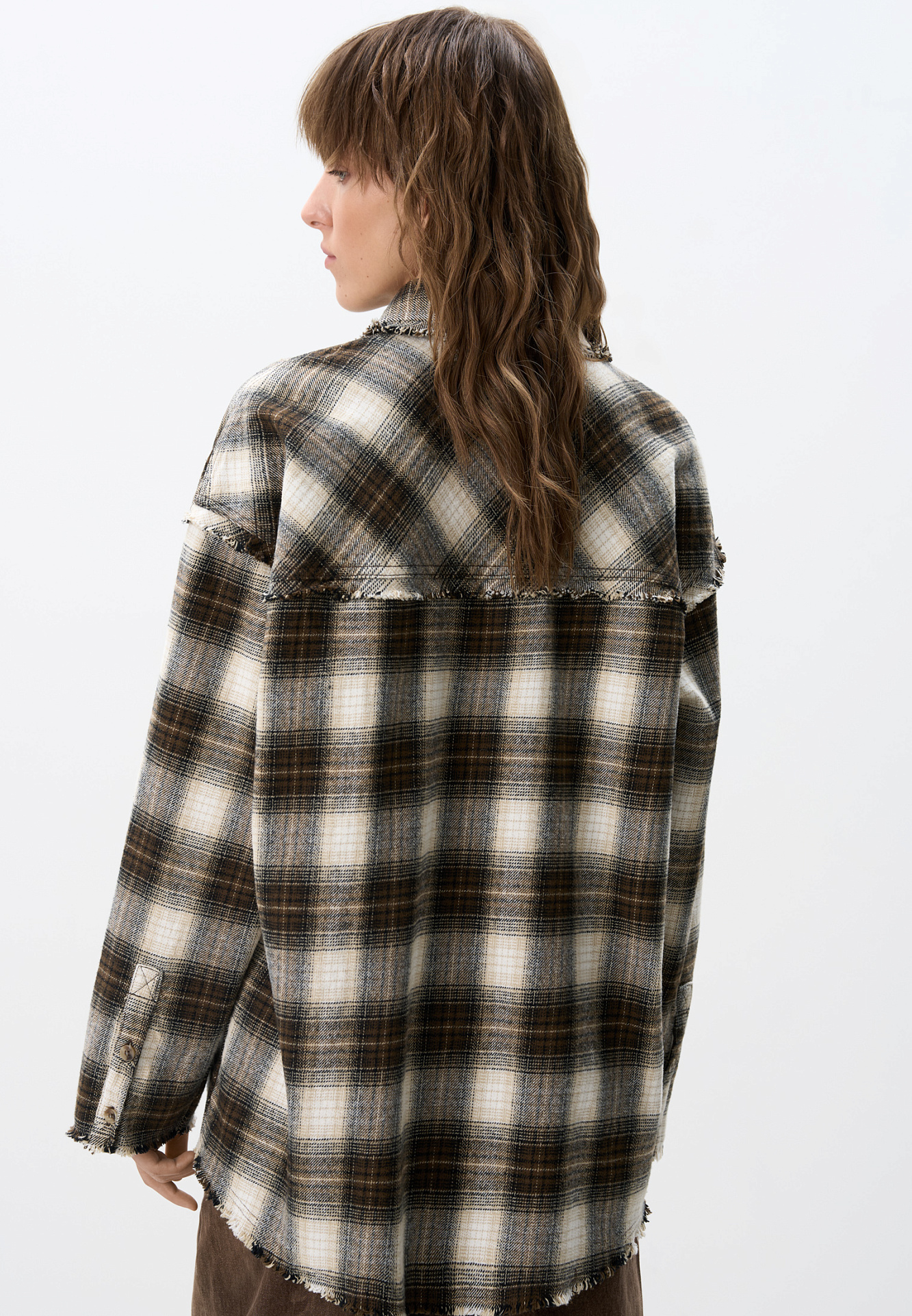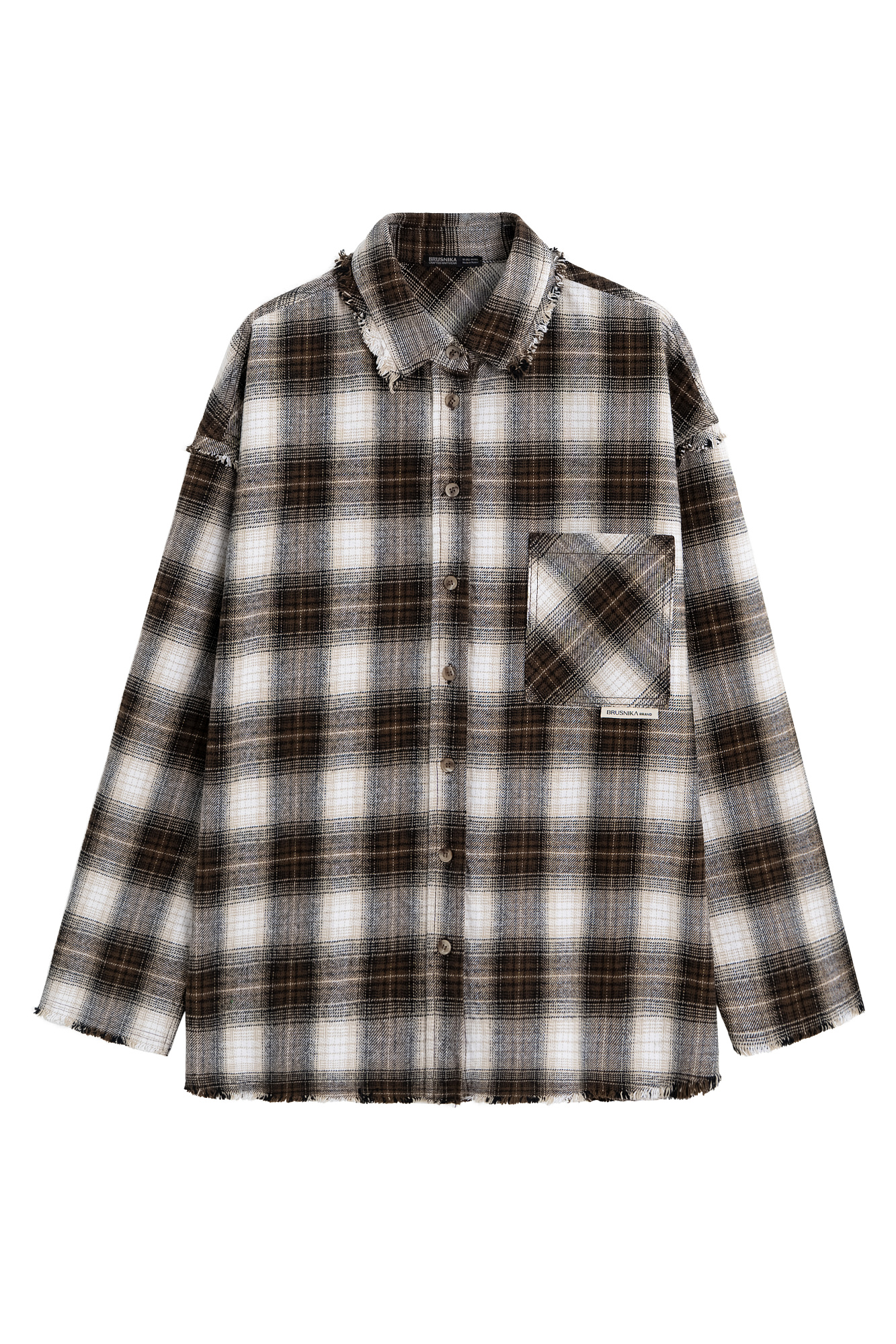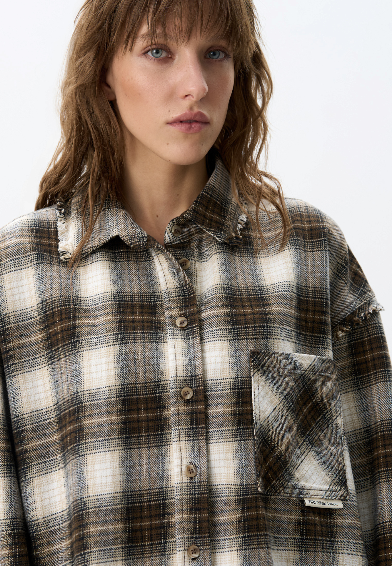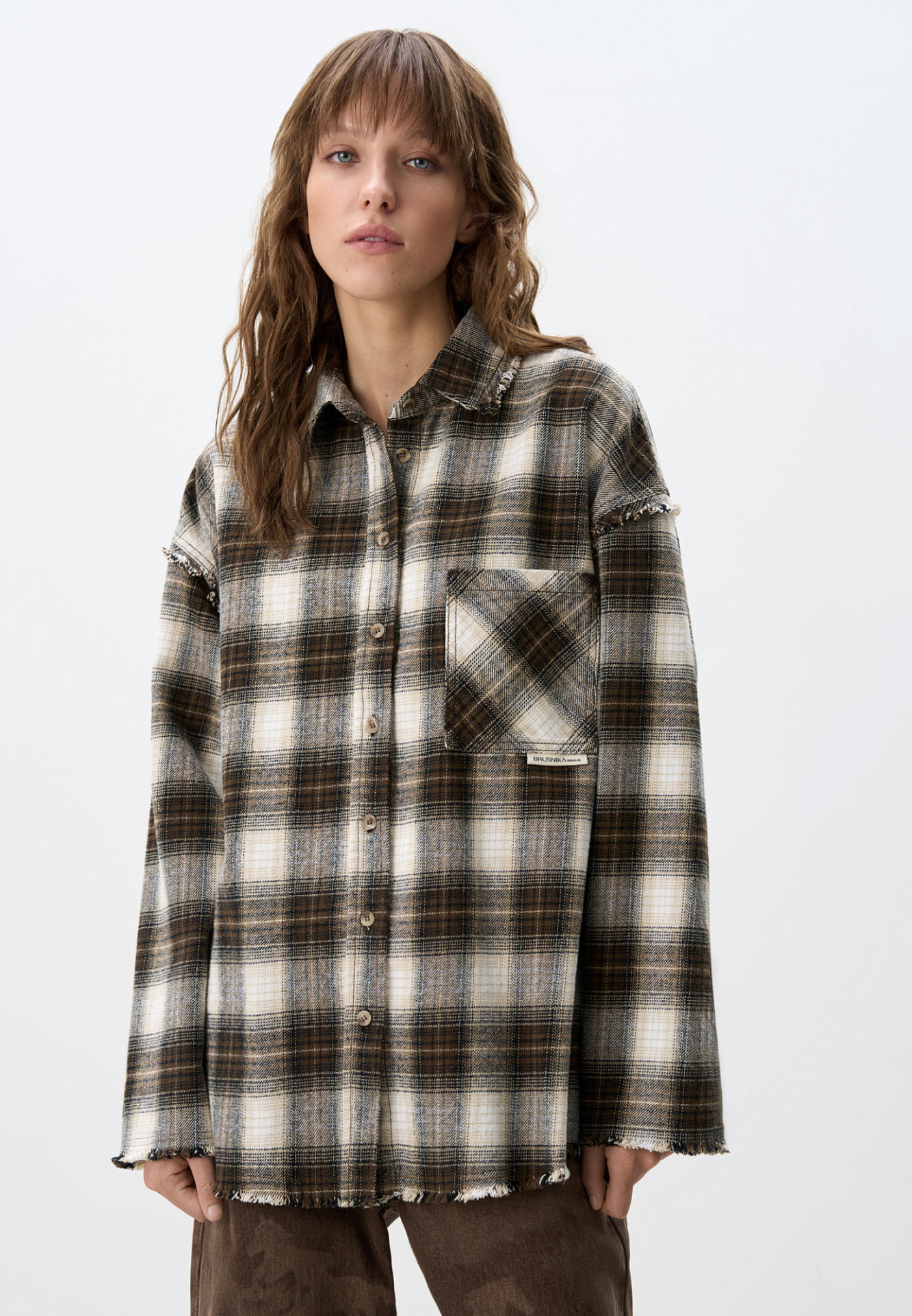 Рубашка в клетку из 100% хлопка. Модель прямого кроя с отложным воротником и нагрудным карманом с логотипом бренда. Изделие декорировано имитацией необработанного края.
