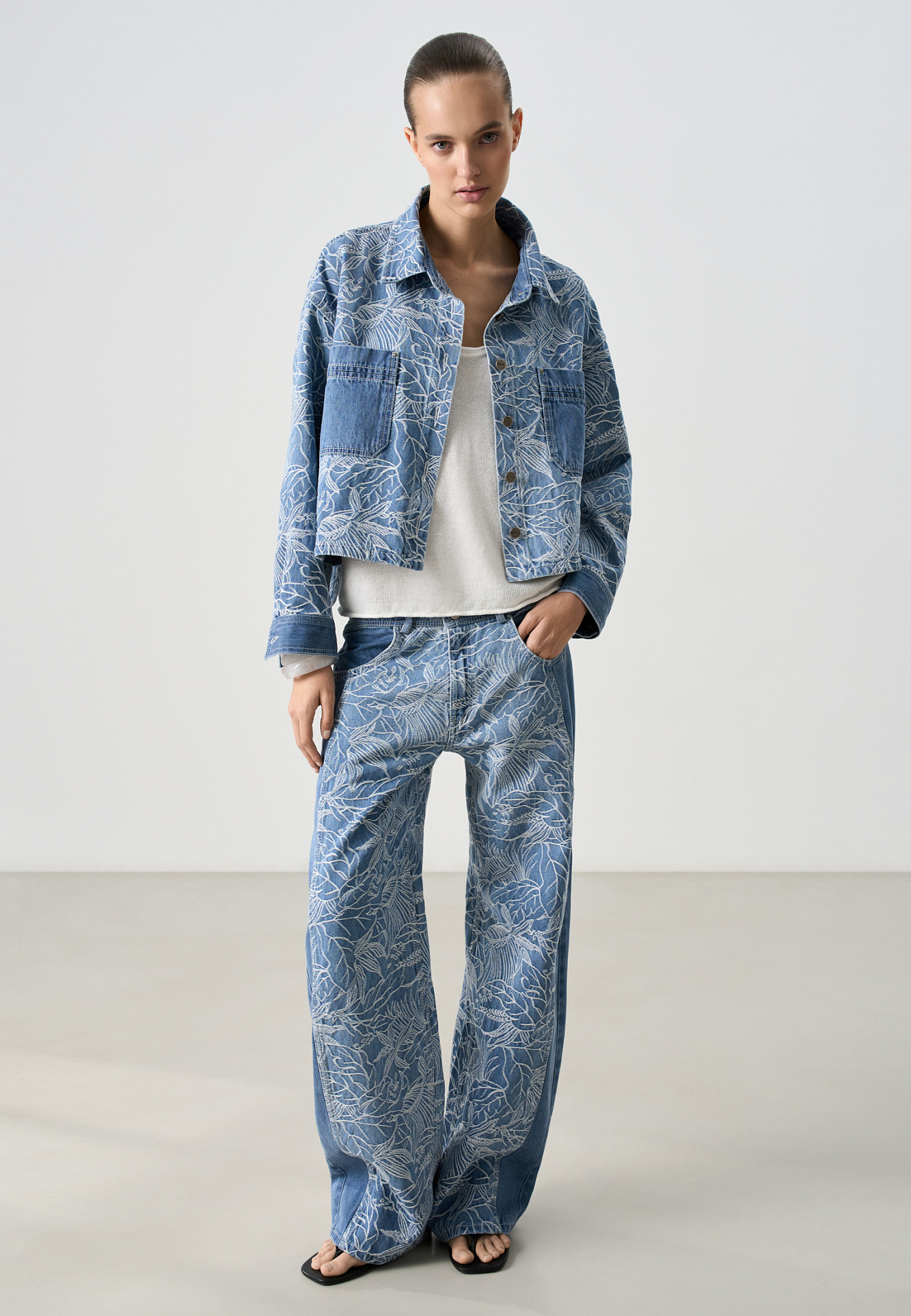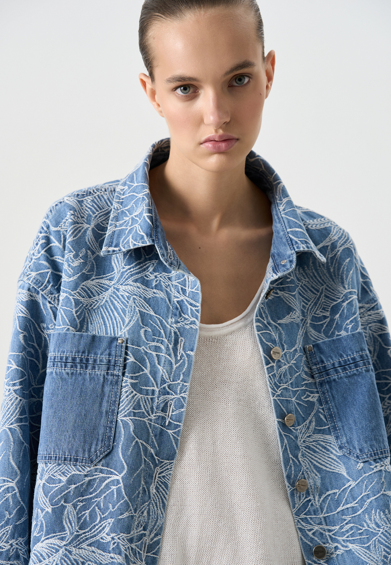 Джинсовая рубашка с растительным орнаментом