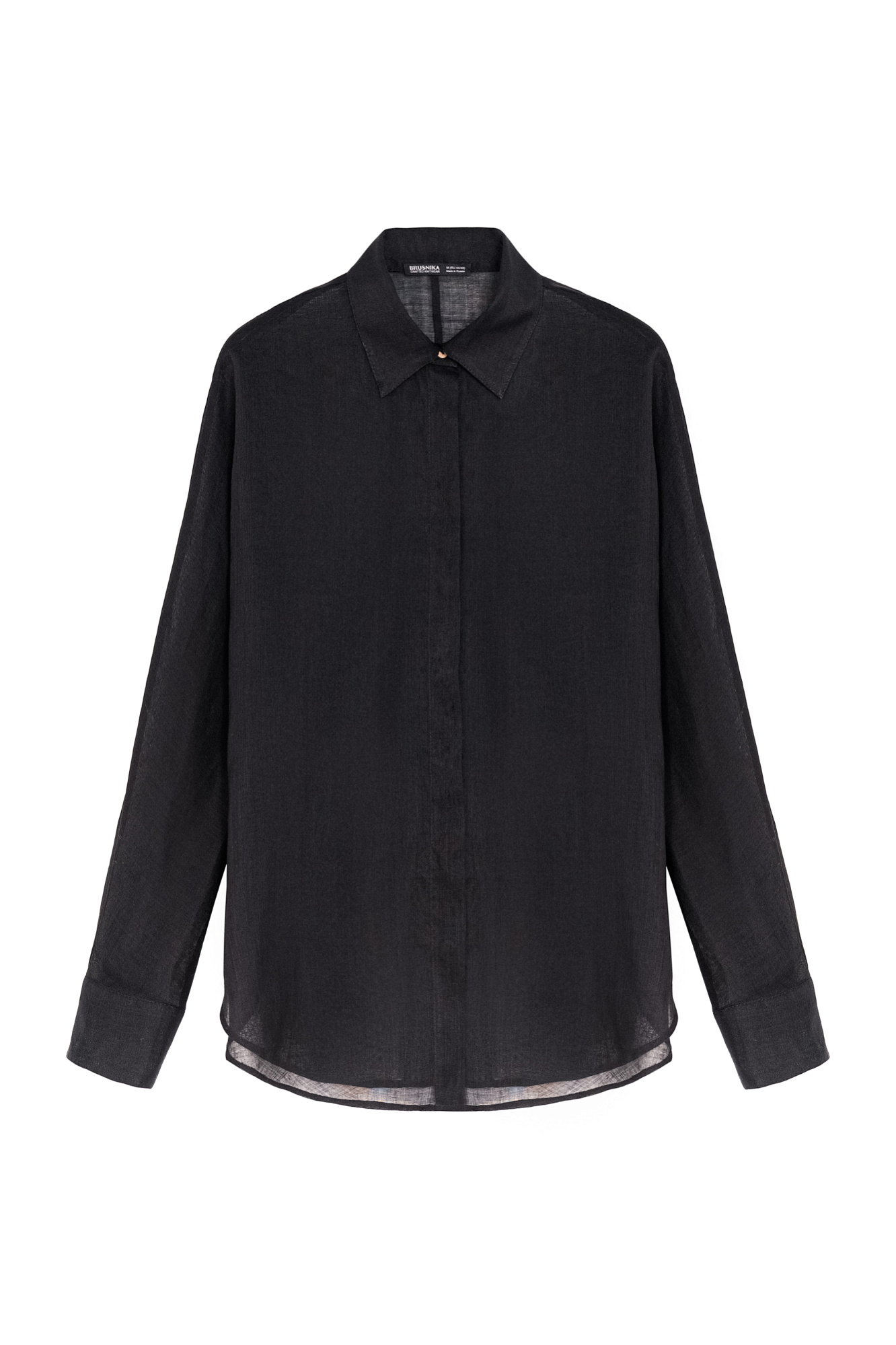 Полупрозрачная рубашка из 100% крапивы. Модель свободного силуэта с классическим воротом и манжетами. Застежка на пуговицы. Ткань из крапивы очень легкая, не электризуется, а натуральное происхождение подчеркивает экологичность данной модели.