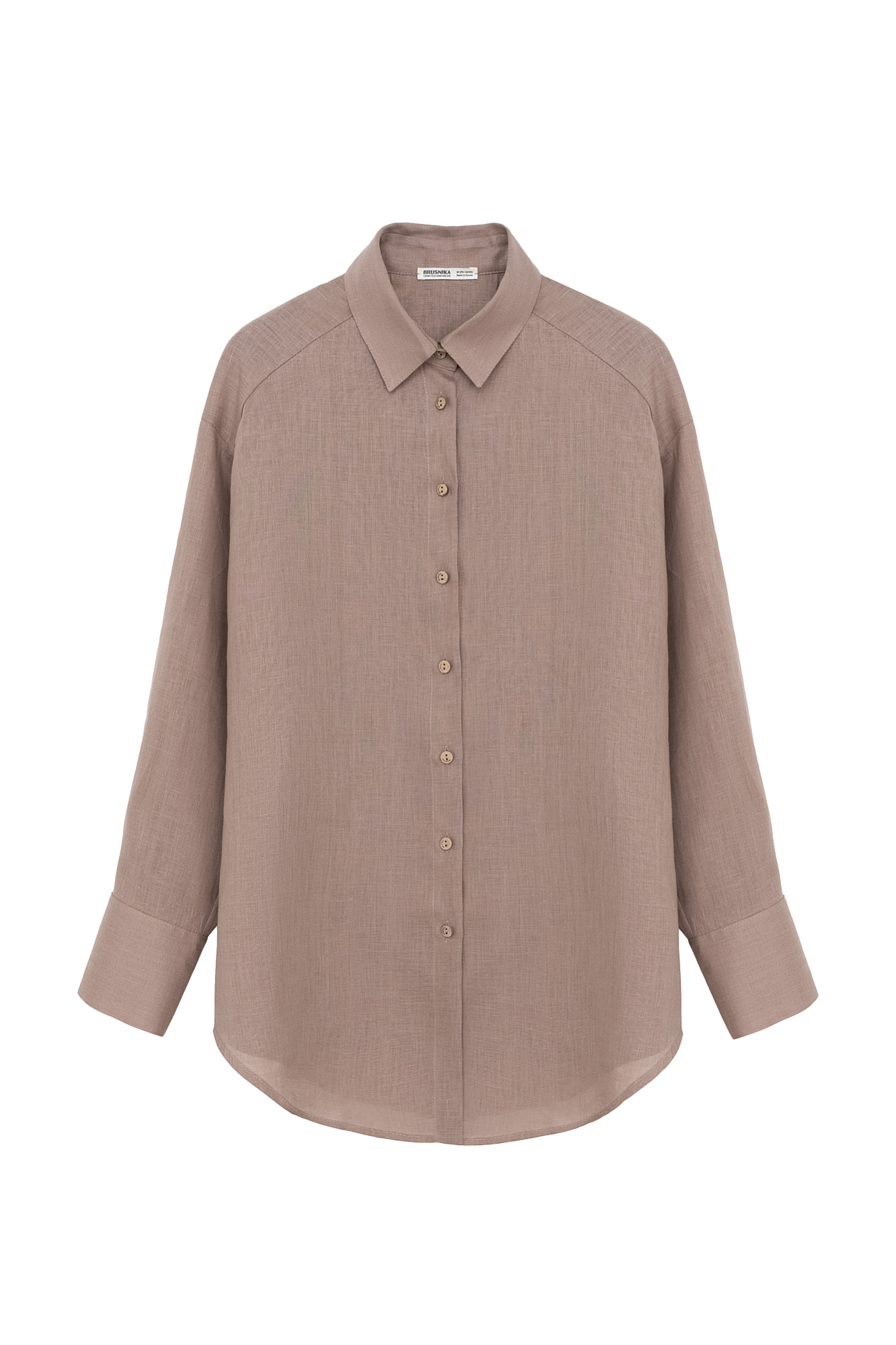 Классическая рубашка из 100% льна. Модель прямого кроя с отложным воротником, длинными рукавами с манжетами на пуговицах и закругленным нижним краем. Застежка на пуговицы.