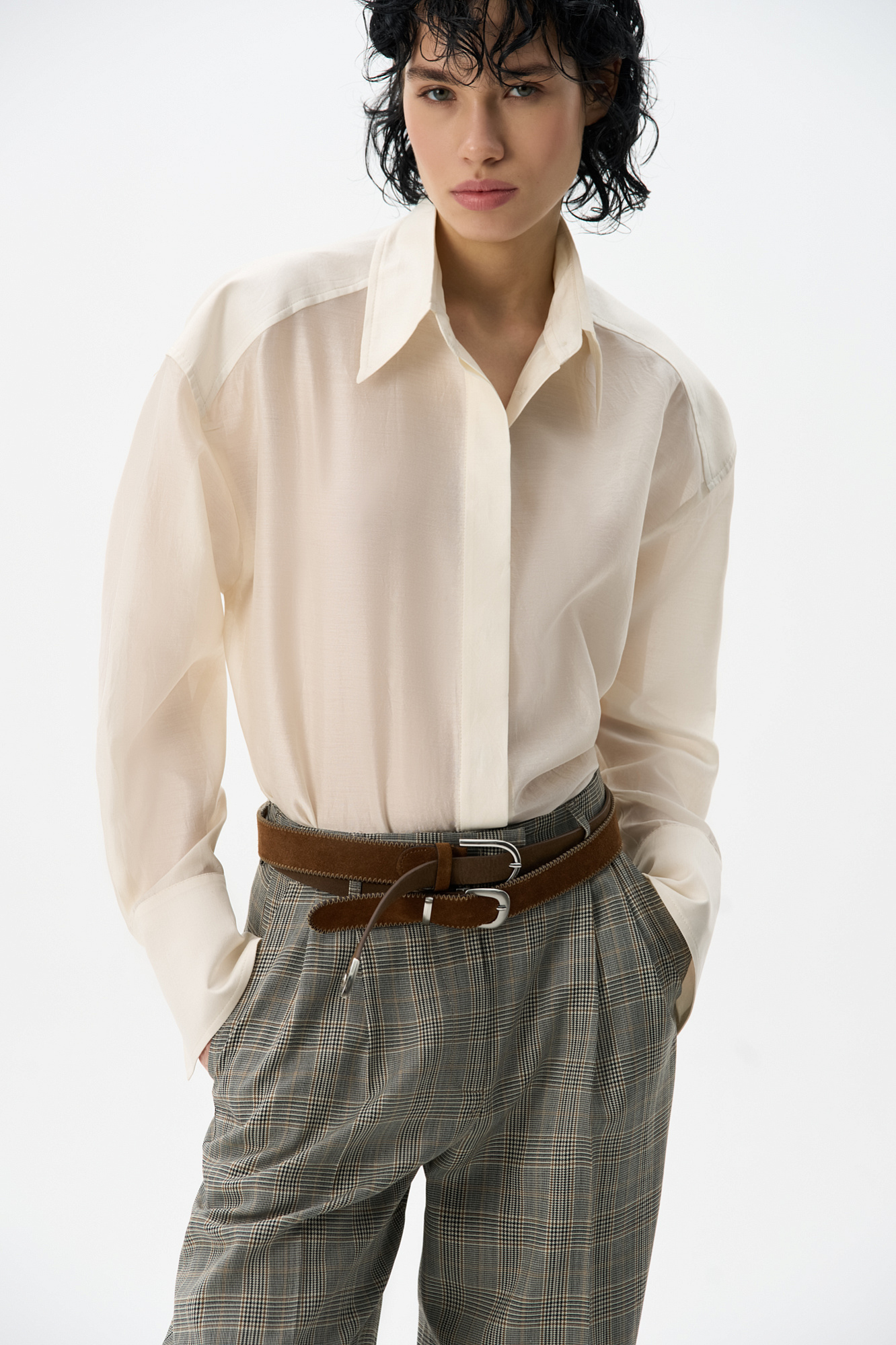 Рубашка из шелка с большими плечами