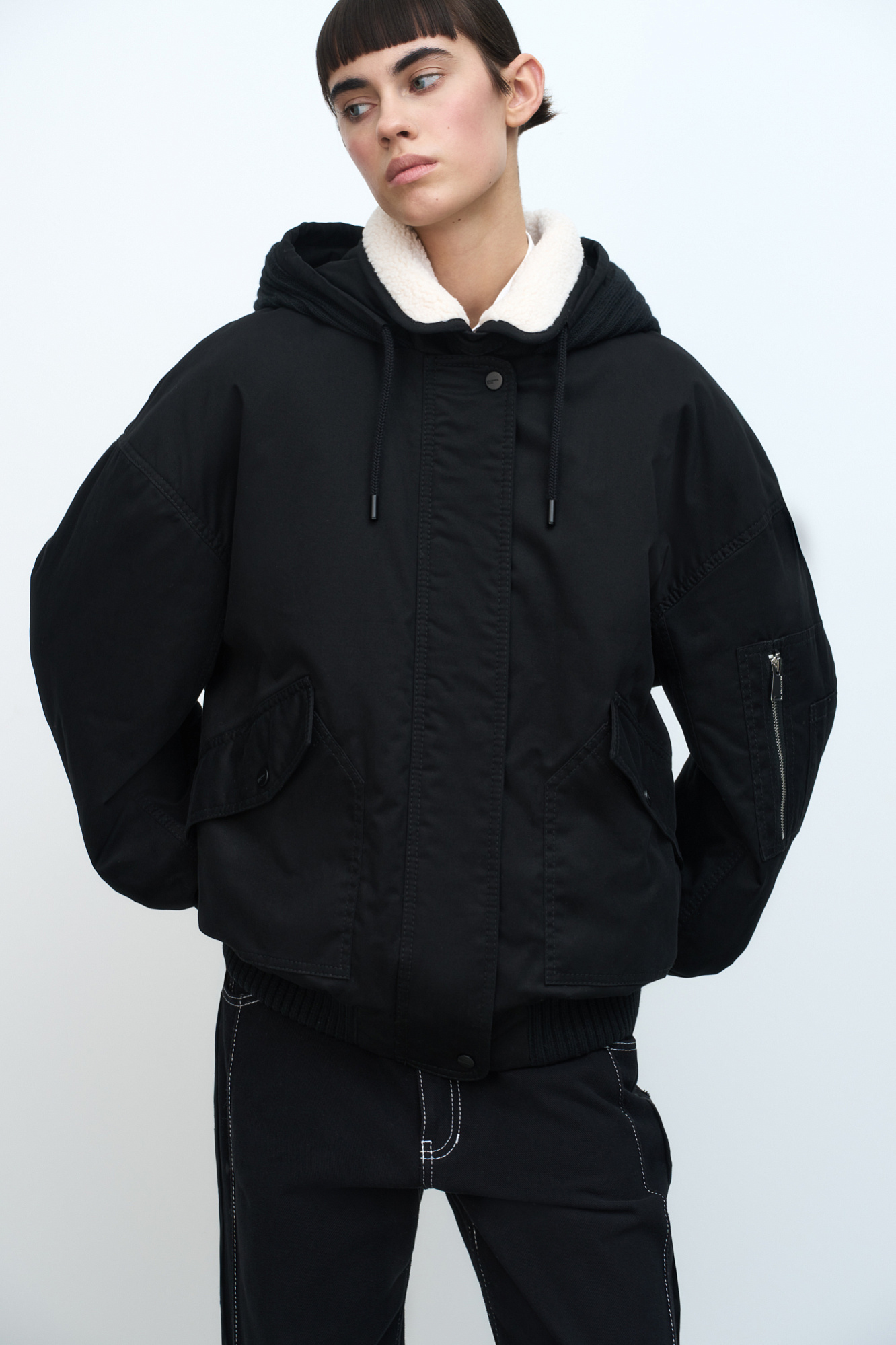 Хлопковый бомбер с капюшоном