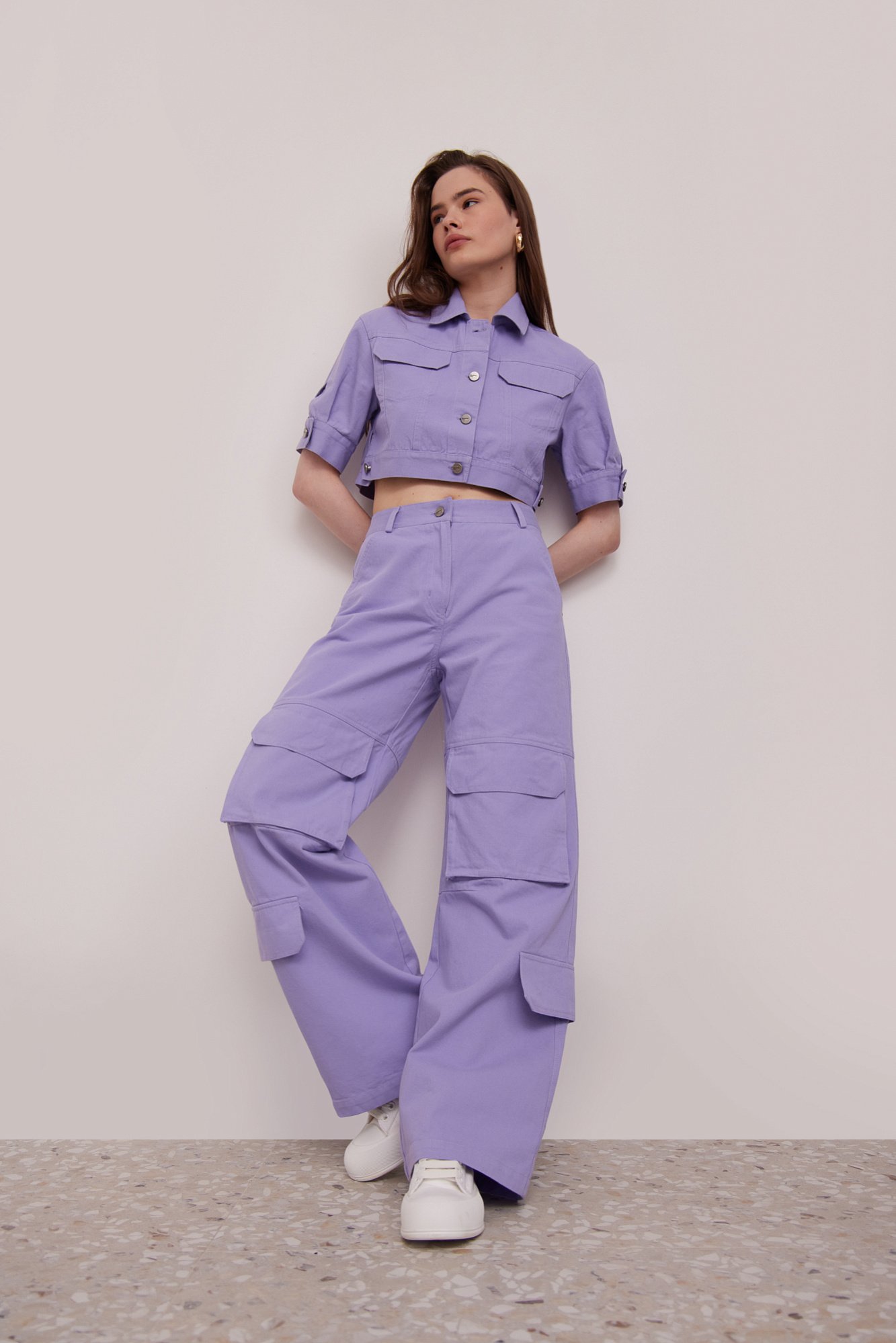 Брюки карго из 100% хлопка. Застежка на молнию и пуговицу.