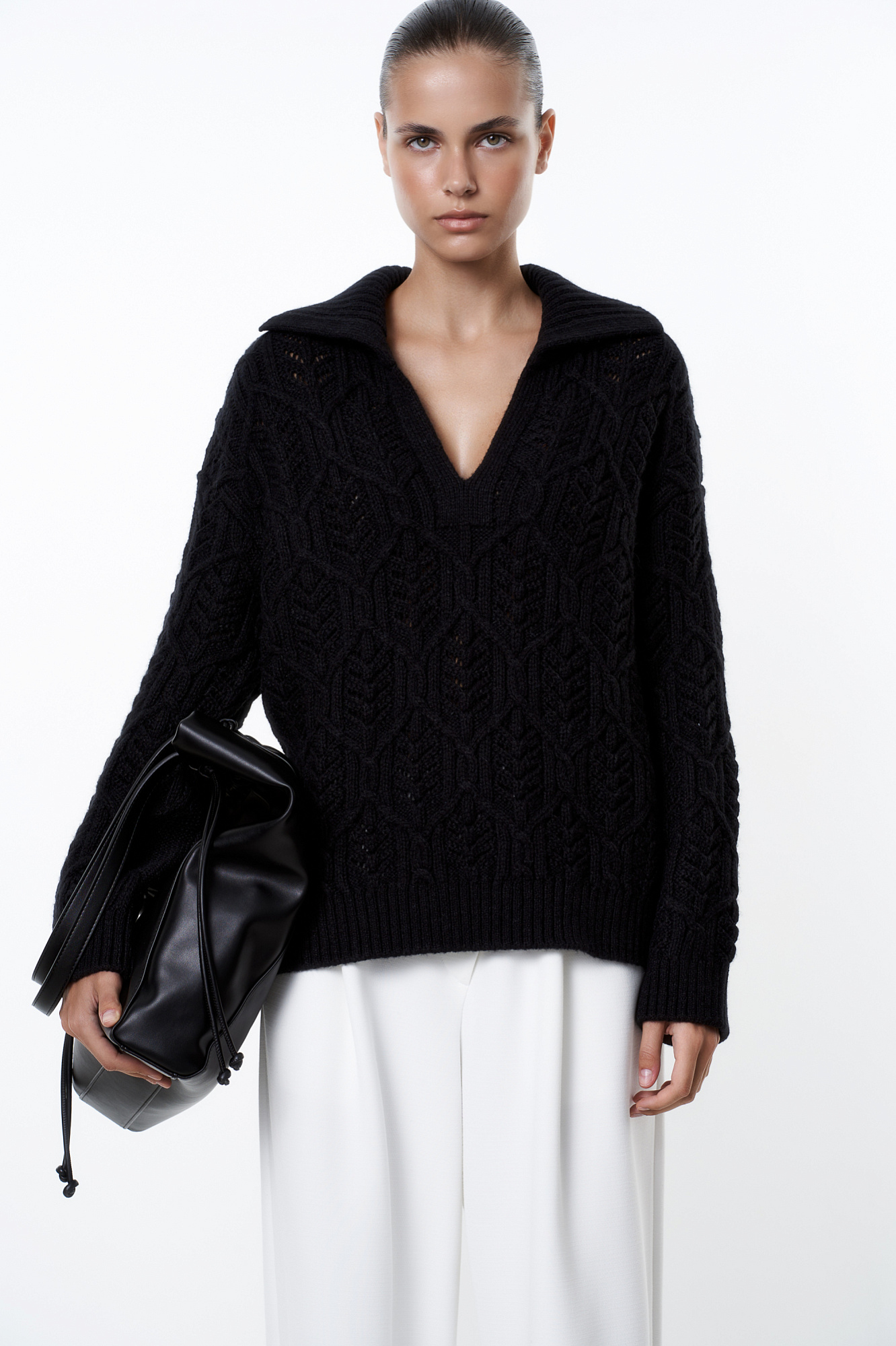 Ажурный джемпер с воротником