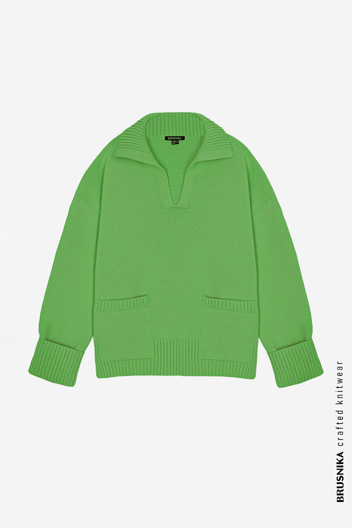 Трикотажный джемпер из хлопка с отложным воротником и накладными карманами.