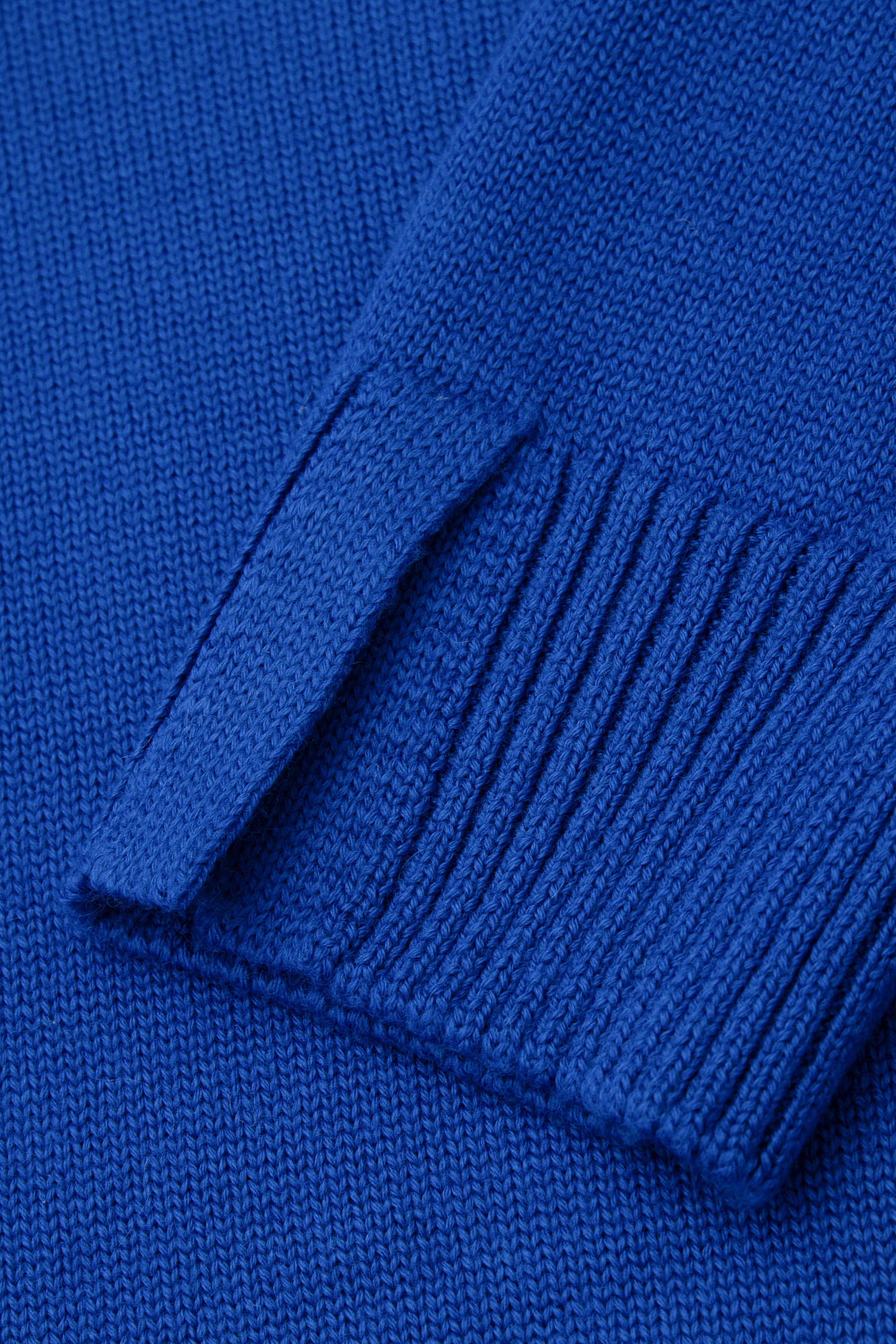 Трикотажный джемпер из шерсти. Модель прямого кроя с декоративным вырезом и разрезами на рукавах.