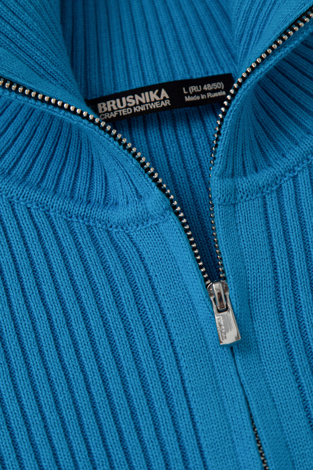 Трикотажный кардиган из 100% хлопка в рубчик. Воротник-стойка, застежка на молнию.