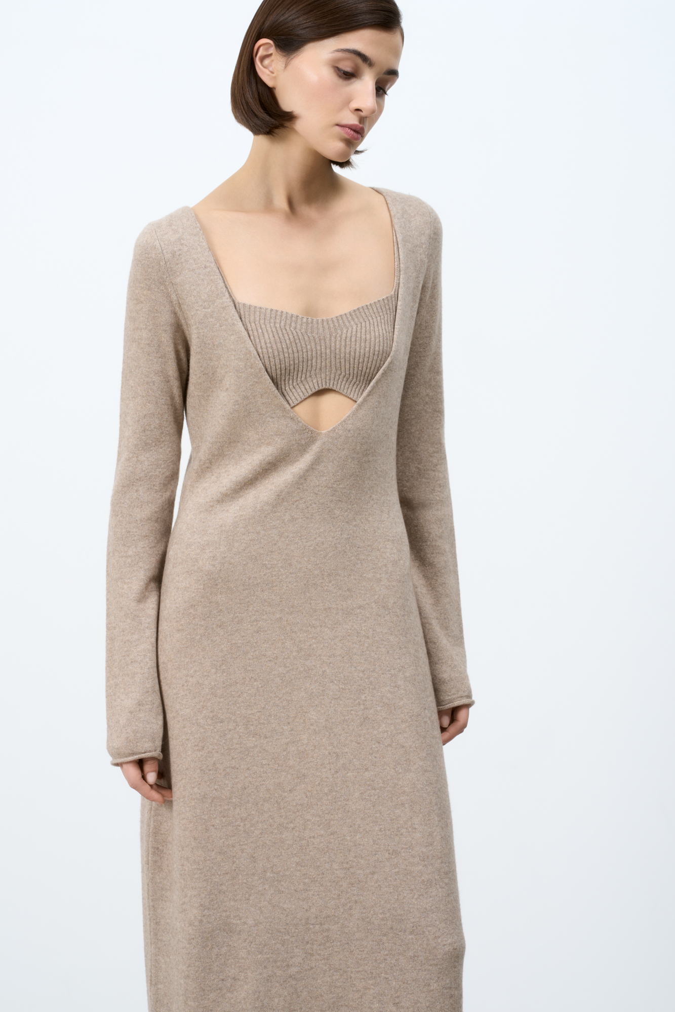 Трикотажное платье с топом в комплекте. Модель приталенного силуэта из шерсти и кашемира с V-образным вырезом.