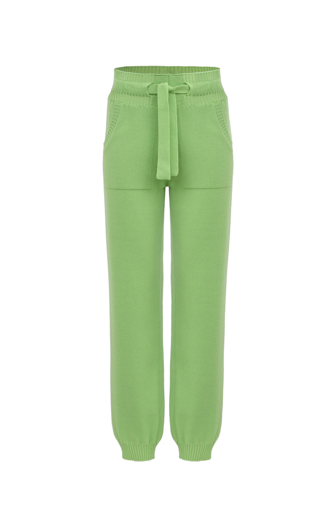 Трикотажные брюки-джоггеры из кашемира и шерсти. Модель с широким эластичным поясом на кулиске, манжетами на резинке и боковыми карманами.