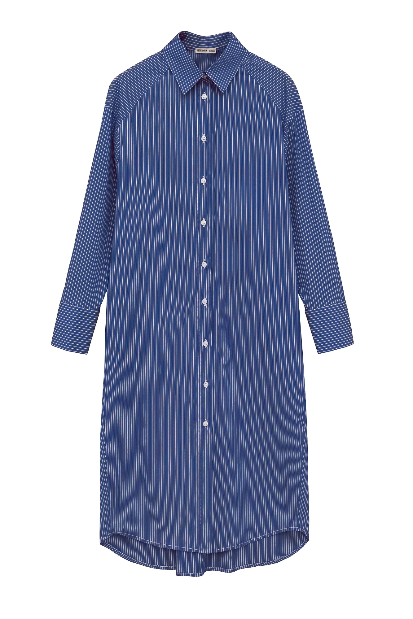 Платье-рубашка из 100% хлопка. Модель свободного силуэта, со спущенной линией плеча, длинными рукавами с манжетами и отложным воротником. Застежка на пуговицы.