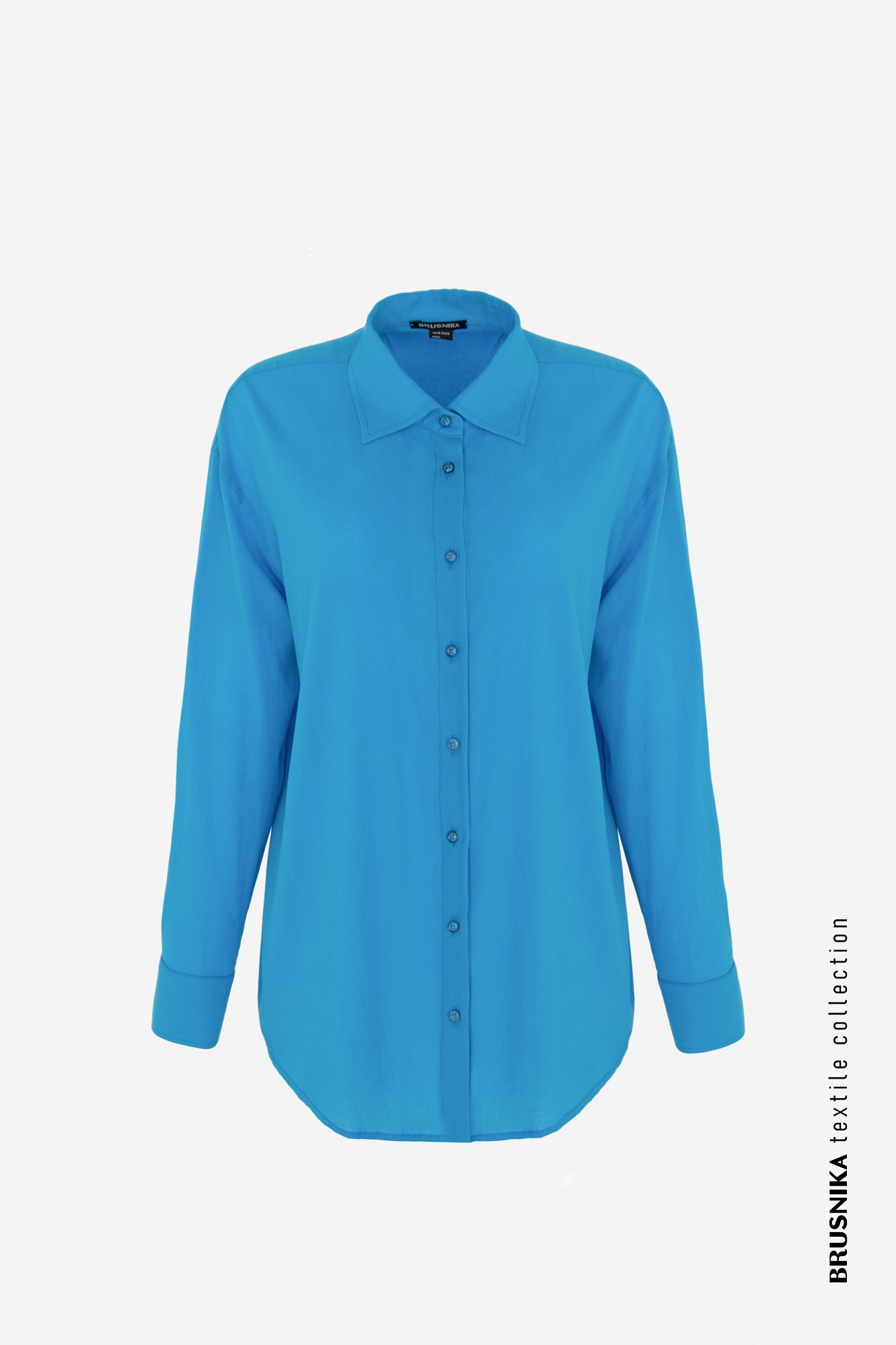 Классическая рубашка из тонкого хлопка. Отложной воротник, длинные рукава с манжетами на пуговица. Застежка на пуговицы.