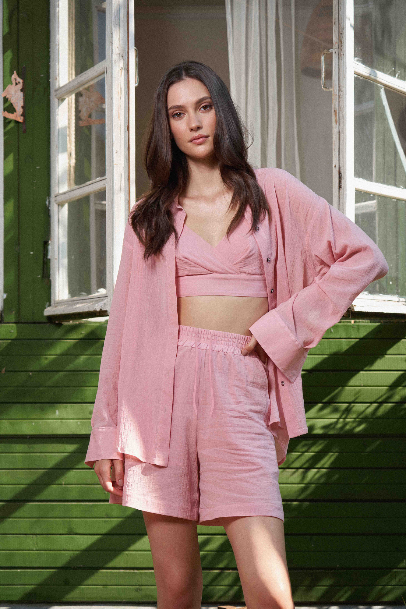 Классическая рубашка из тонкого хлопка. Отложной воротник, длинные рукава с манжетами на пуговица. Застежка на пуговицы.