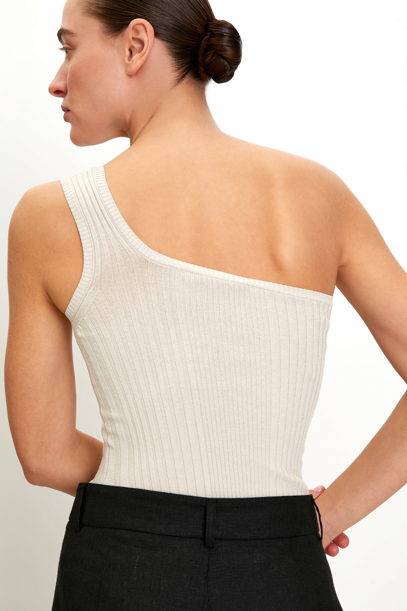 Трикотажный топ на одно плечо из вискозы в широкий рубчик.