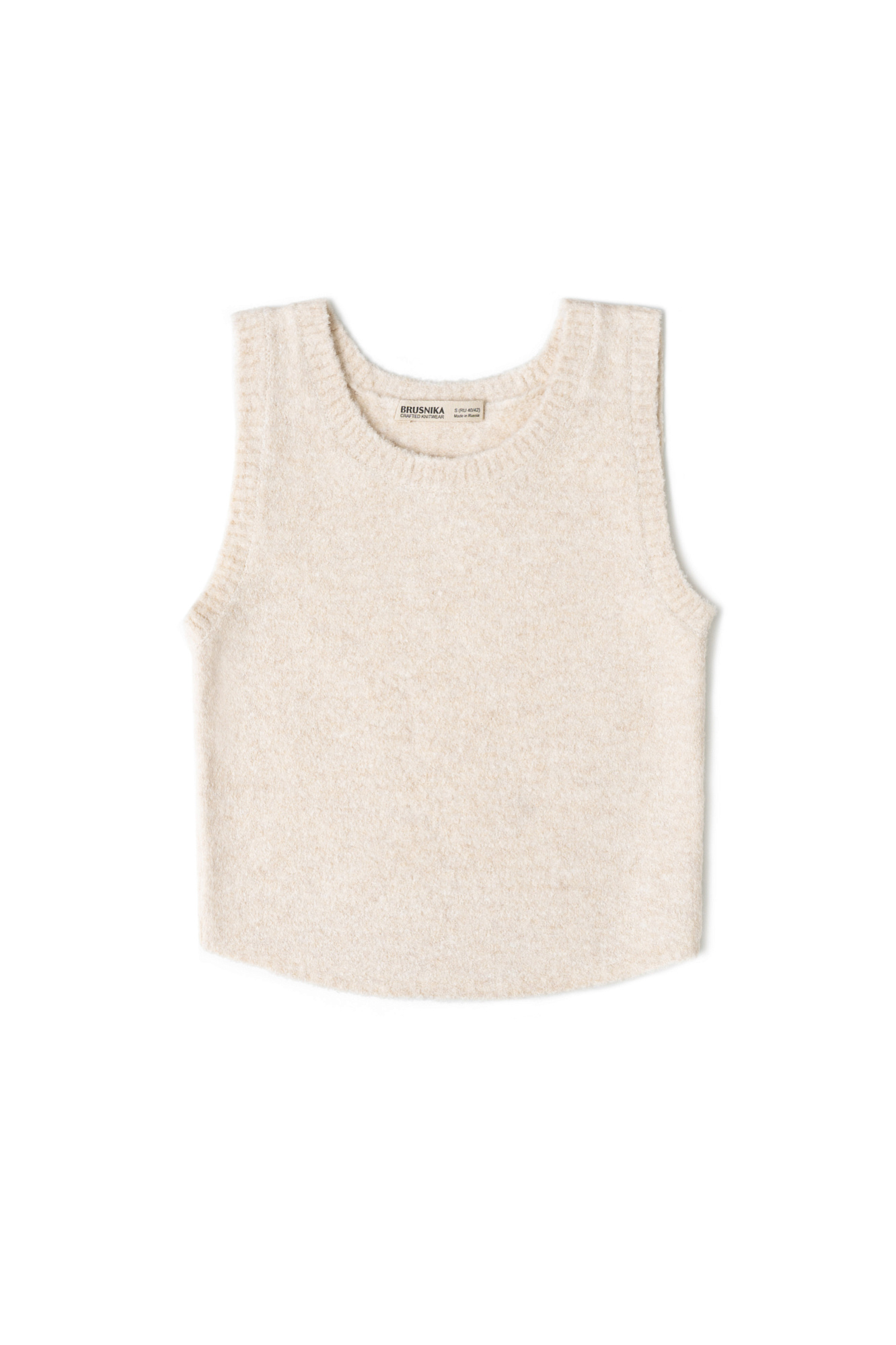 Укороченный трикотажный топ из шерсти с круглым вырезом. Края изделия в рубчик.