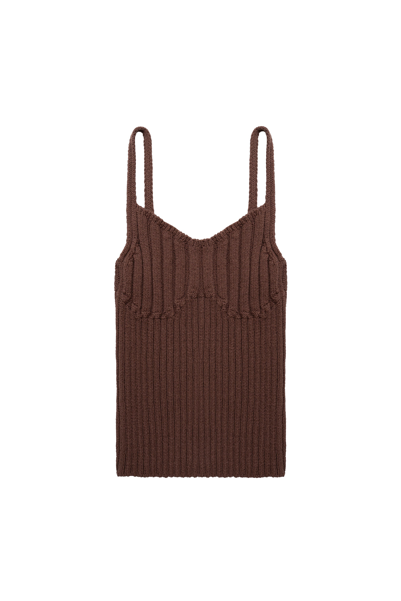 Хлопковый топ на тонких бретелях гармонично дополняет любой образ, а рубчик разного размера выгодно акцентирует внимание на груди, добавляя объема.