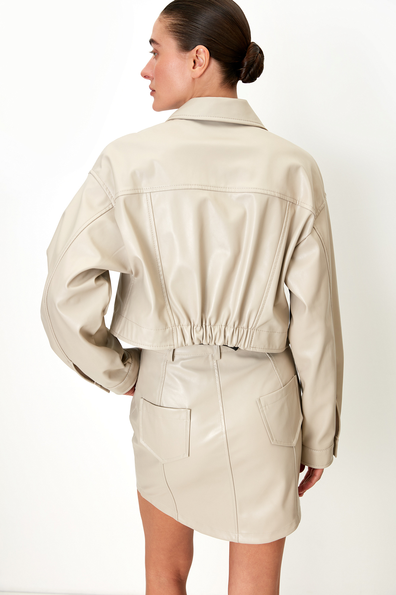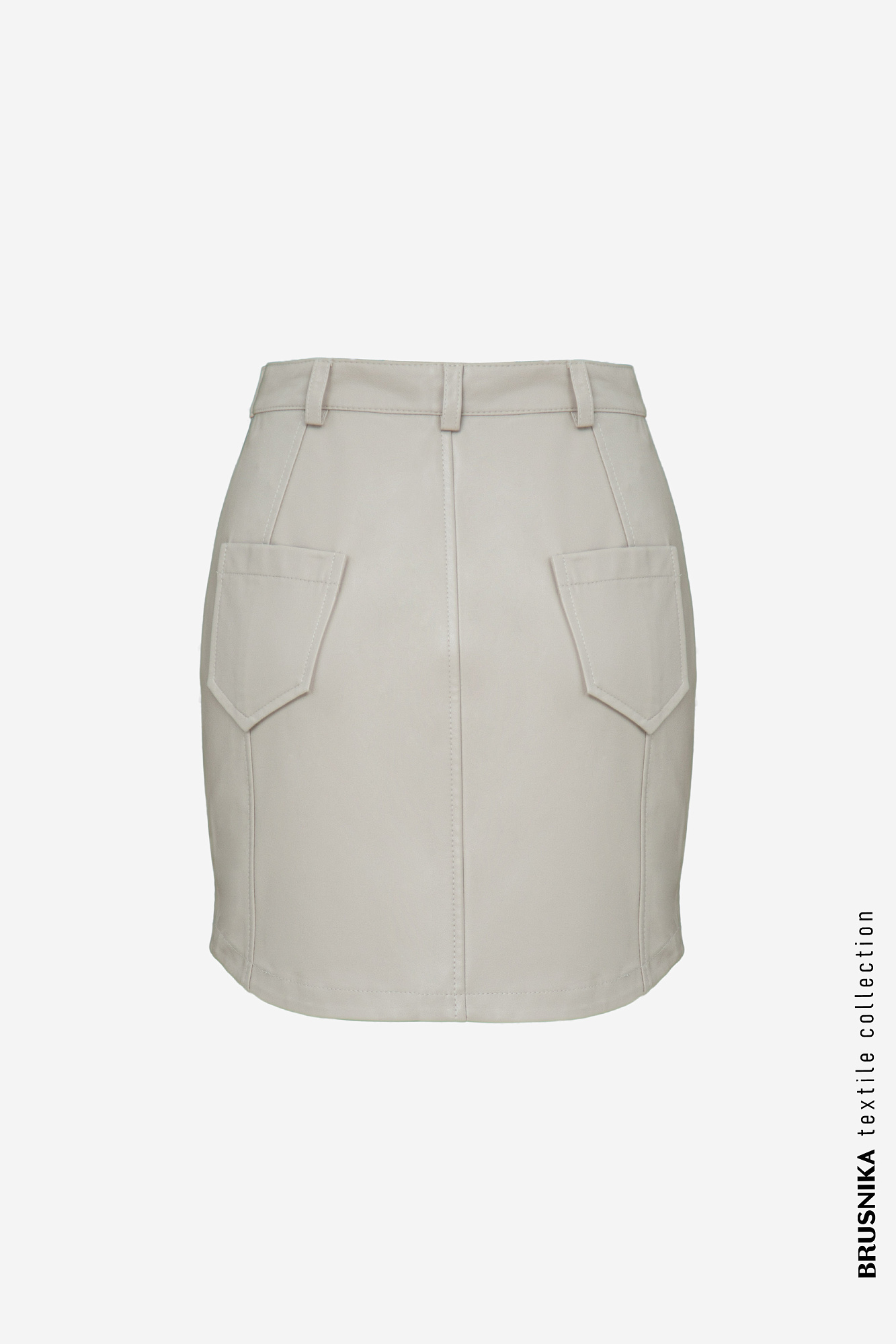 Юбка длины мини из экокожи с рельефными швами и накладными карманами сзади. Потайная застежка на молнию. Паты на поясе для ремня.