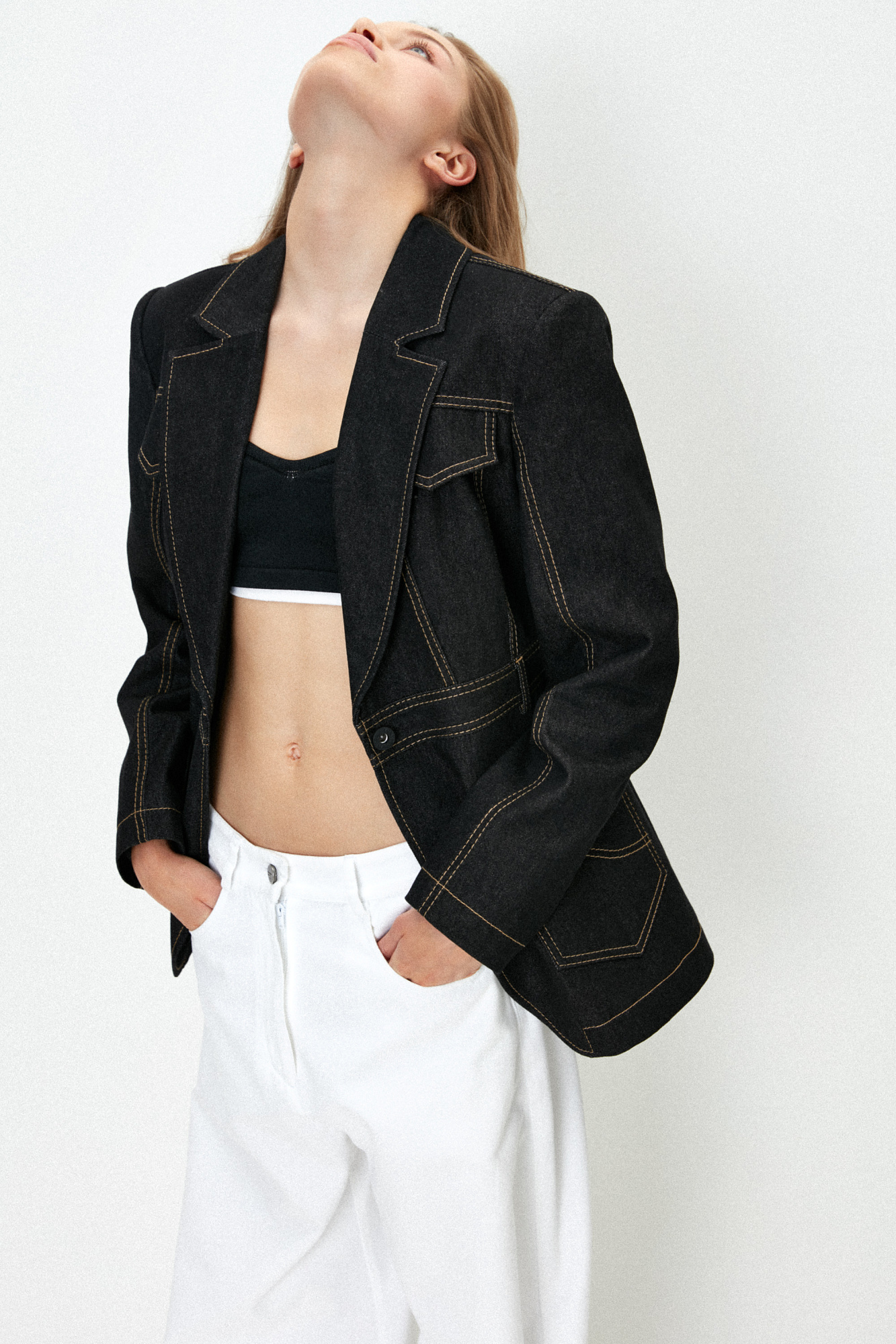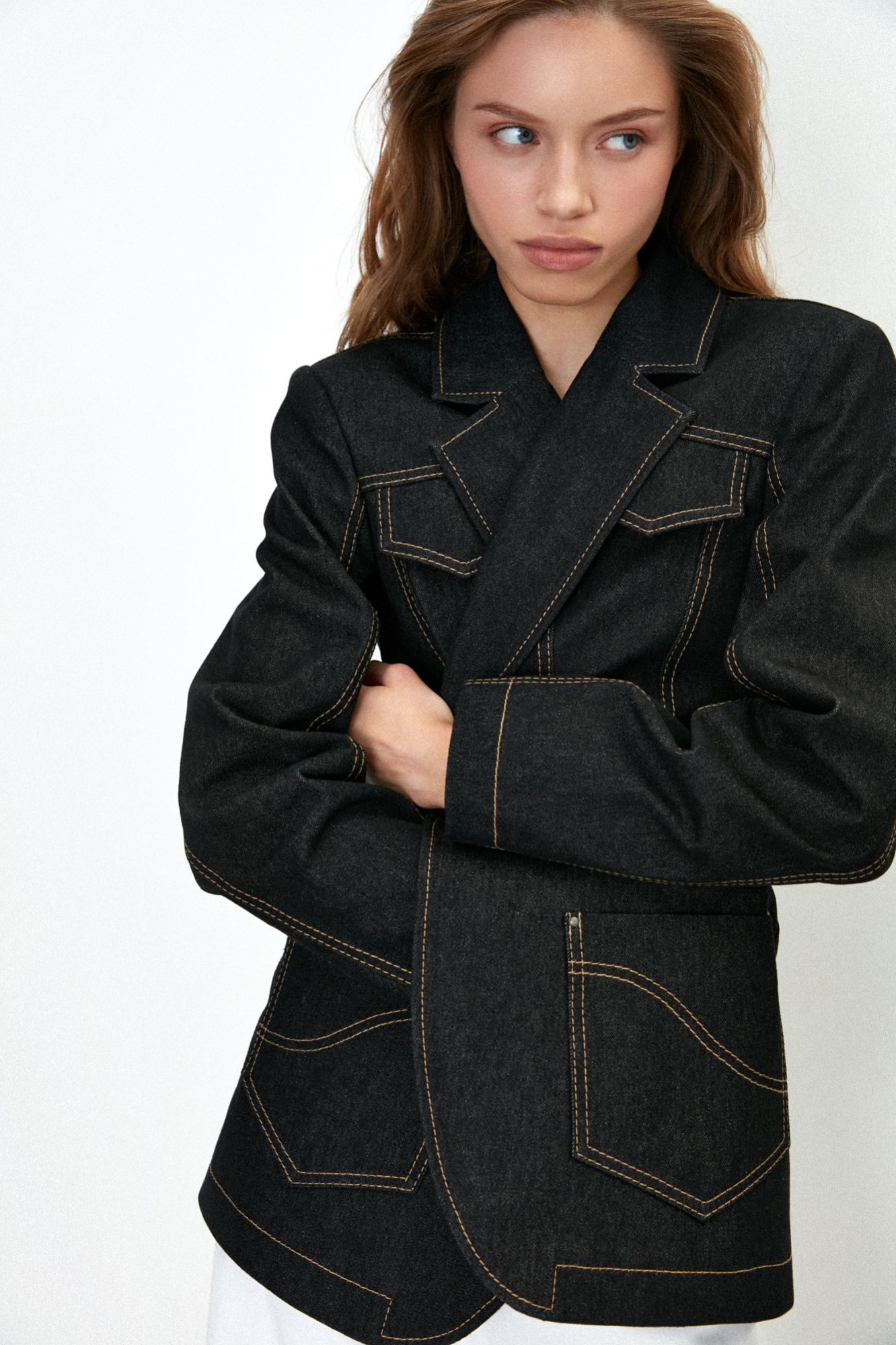 Джинсовый жакет из 100% хлопка с накладными карманами и застежкой на пуговицу.