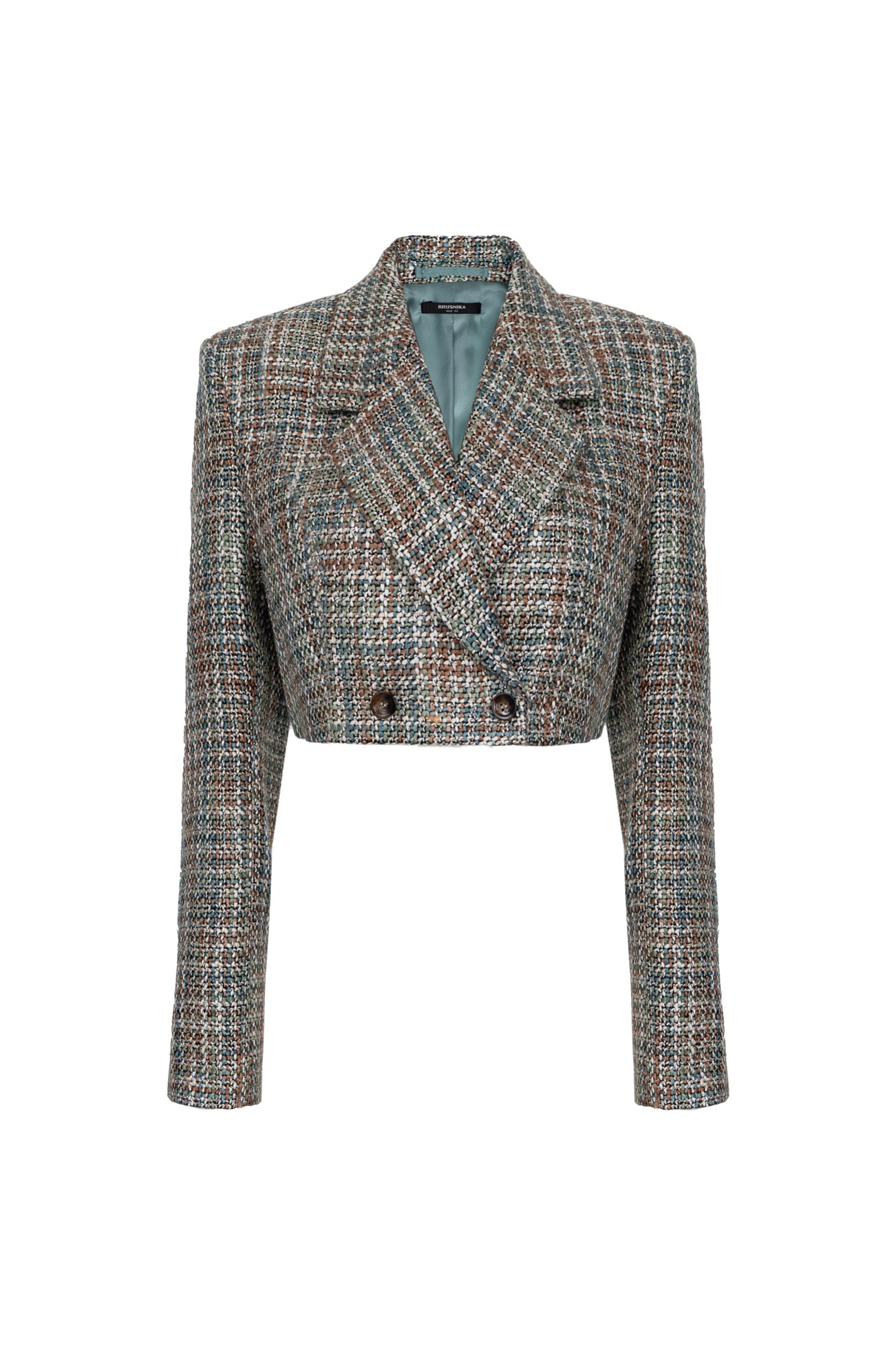 Укороченный жакет. Отложной воротник с прямоугольными лацканами. Модель приталенного силуэта с подкладкой.