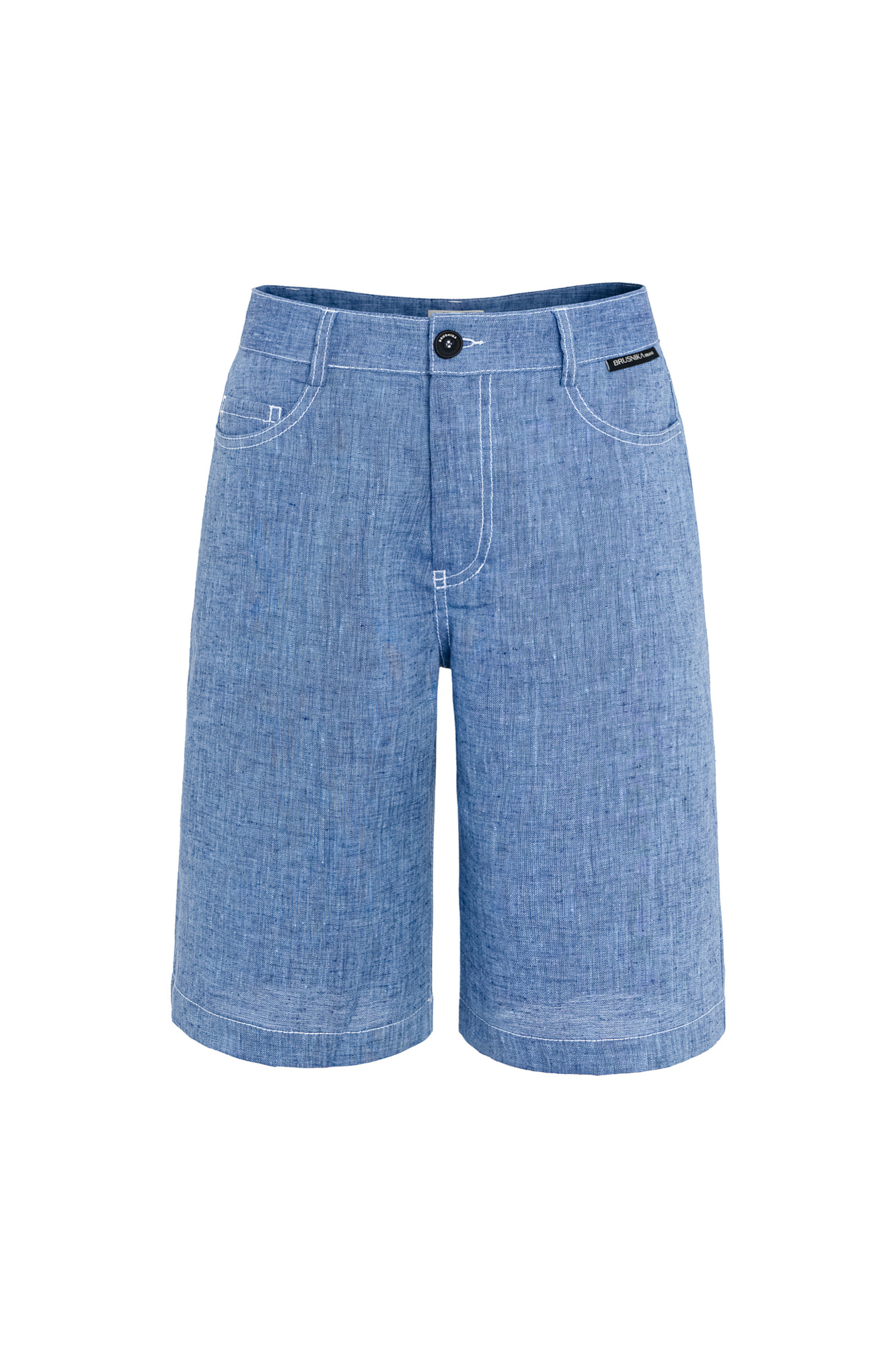 Шорты из 100% льна с брендированным ярлыком на поясе. Пять карманов, застежка на молнию и пуговицу.