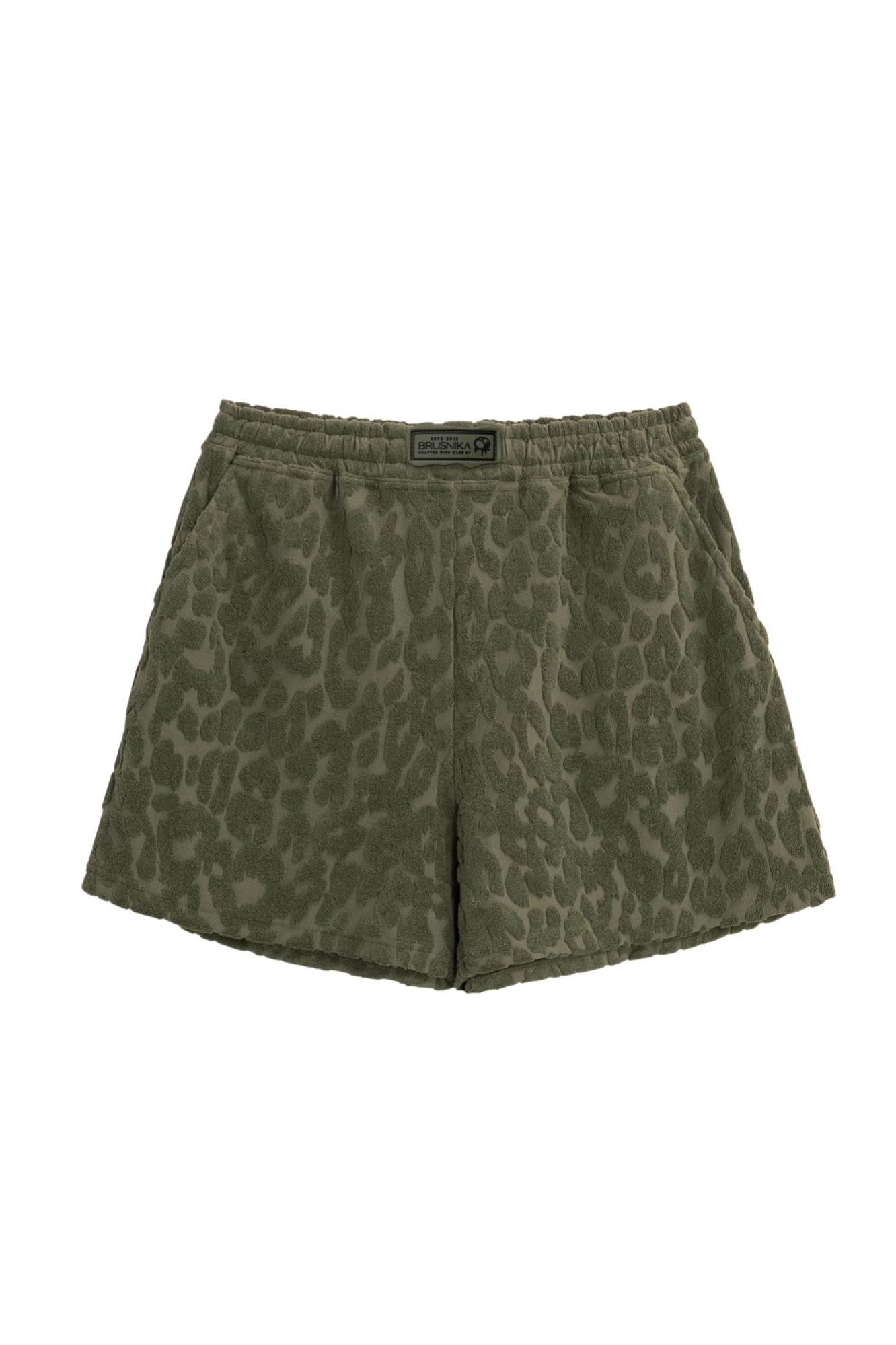Шорты из махрового трикотажа. Модель свободного силуэта с эластичным поясом на кулиске и брендированным ярлыком. Дополнить образ можно футболкой в таком же стиле.
