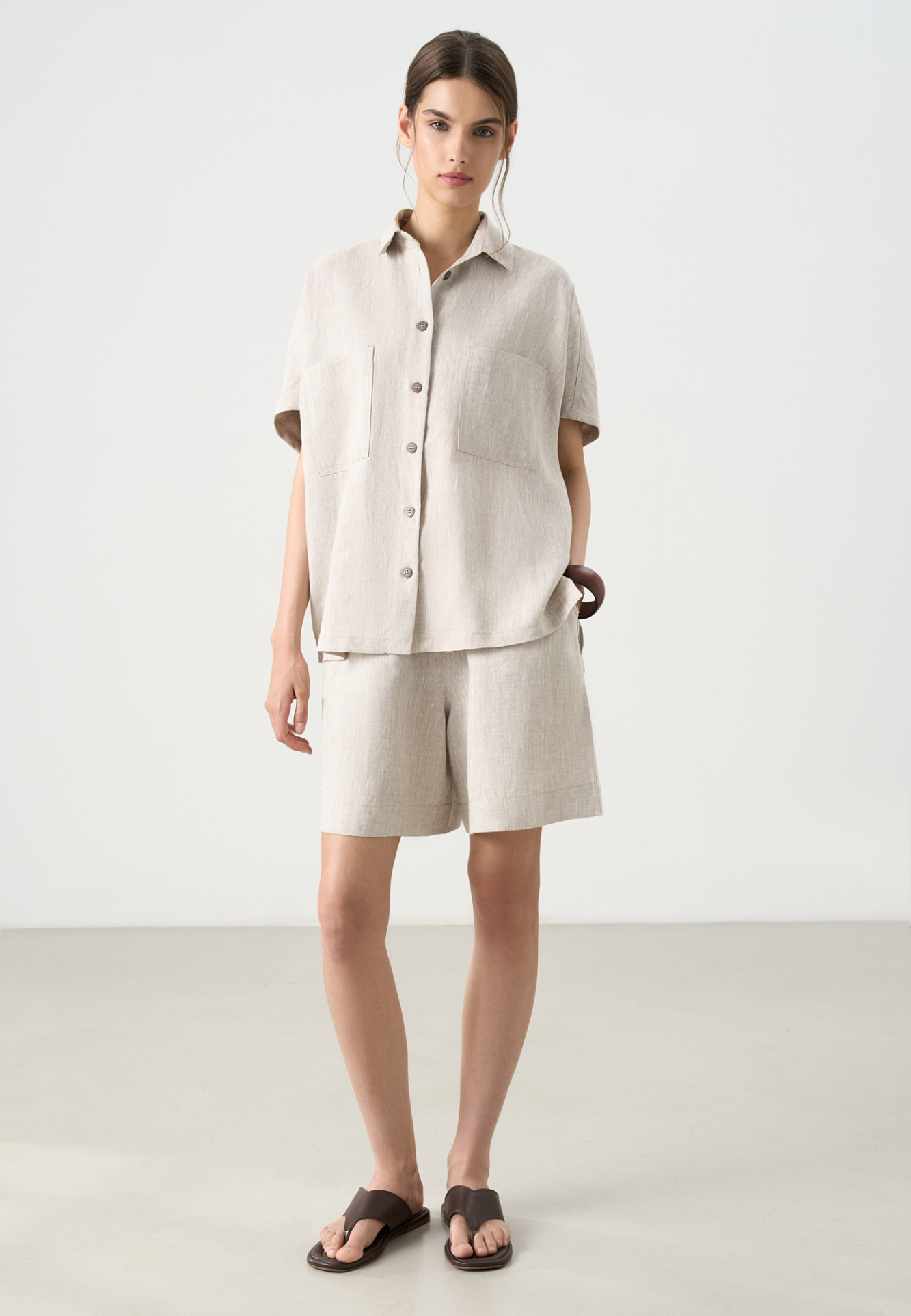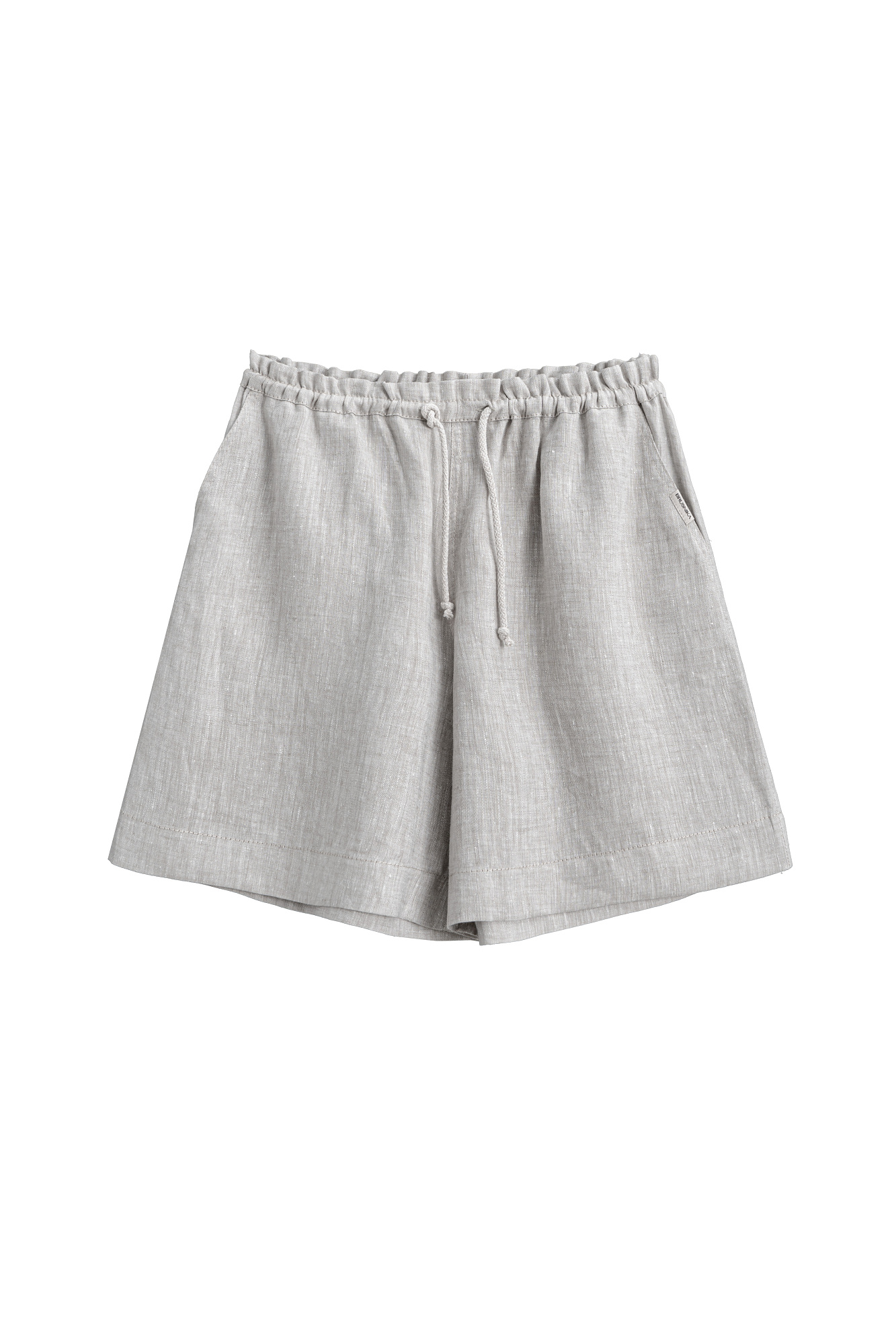 Короткие шорты из 100% льна. Модель свободного кроя, с поясом на кулиске и боковыми карманами.
