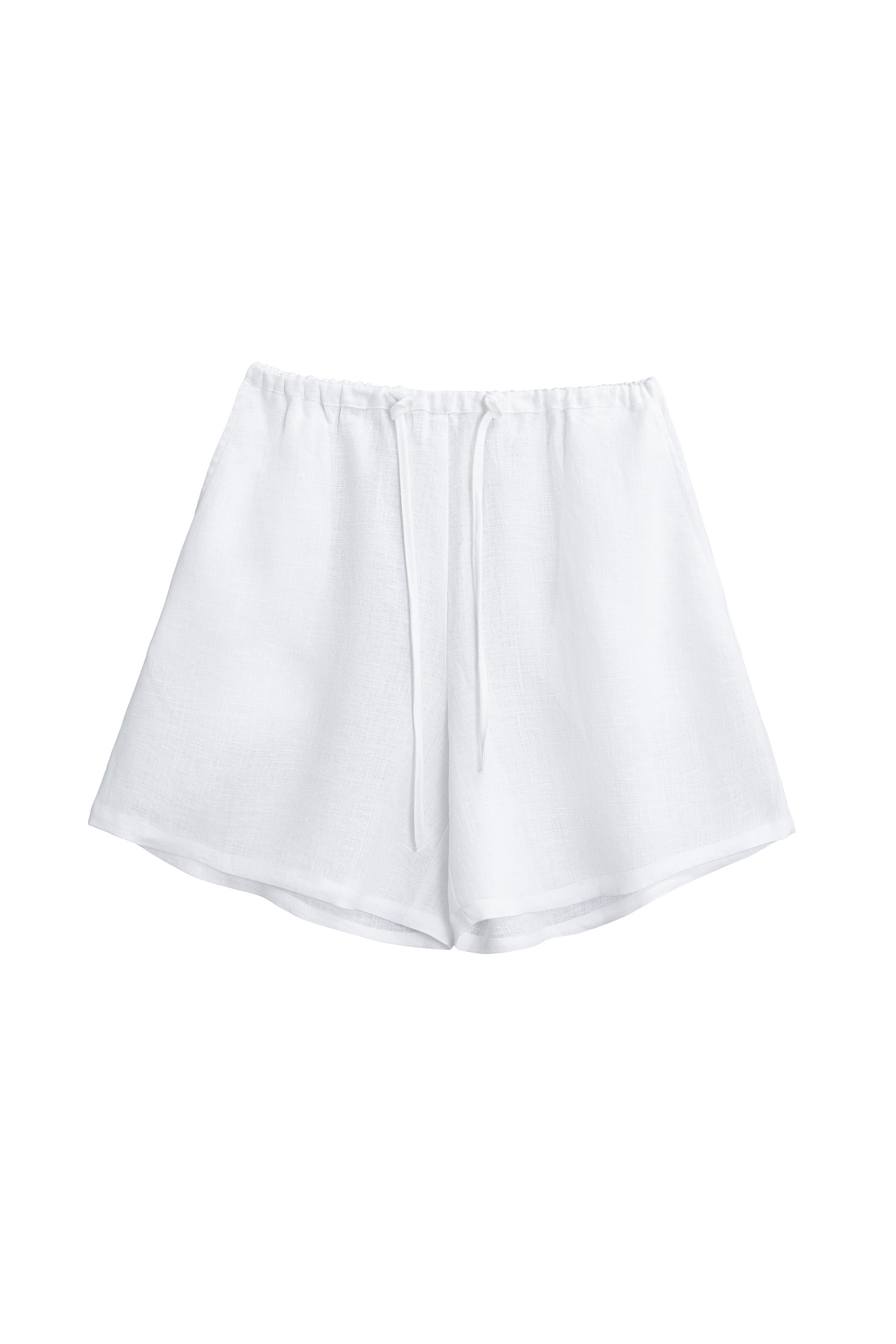 Короткие шорты из 100% льна. Модель прямого кроя с небольшим расширением к низу. Изделие выполнено с поясом на кулиске. Два боковых кармана.