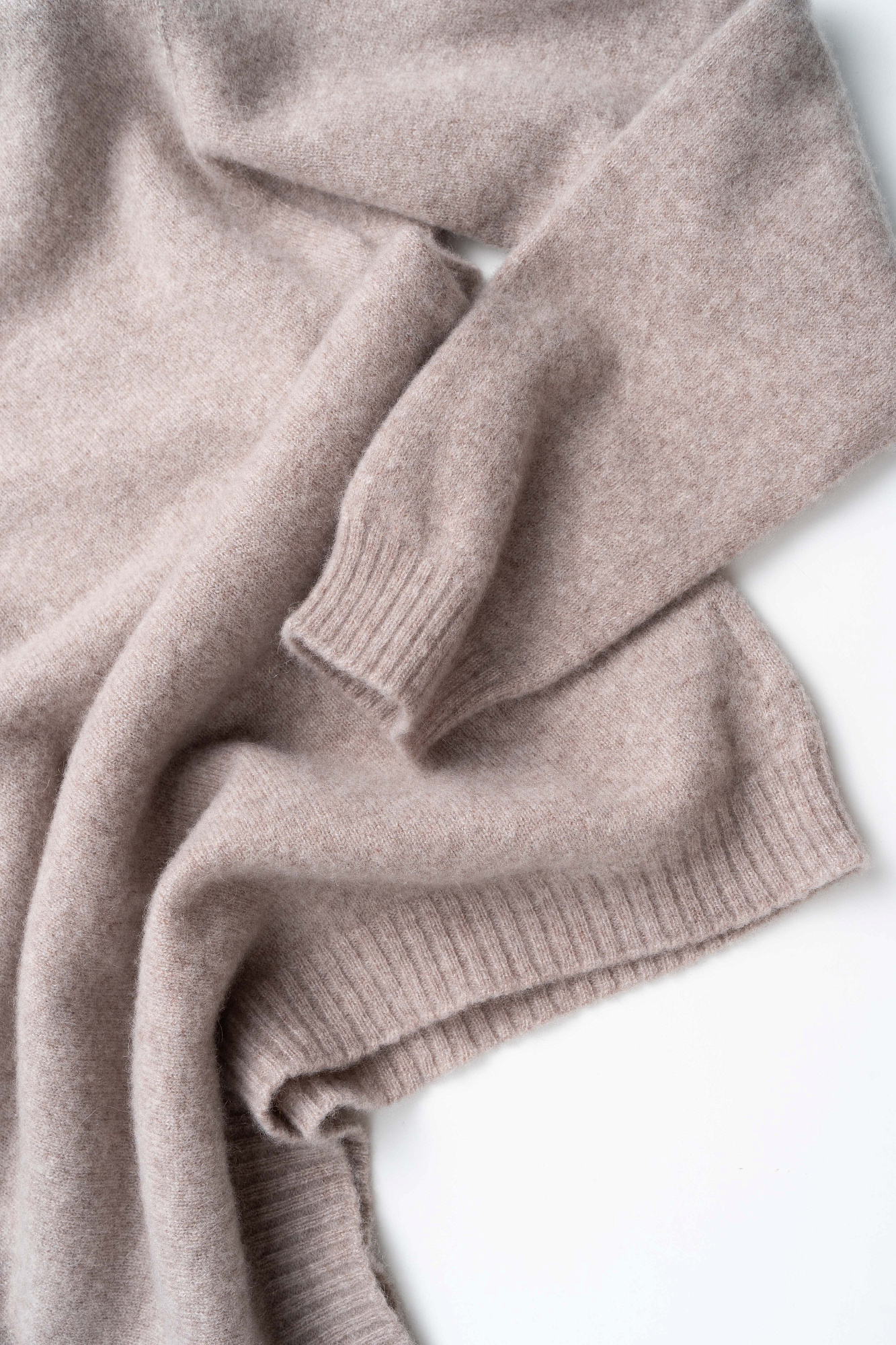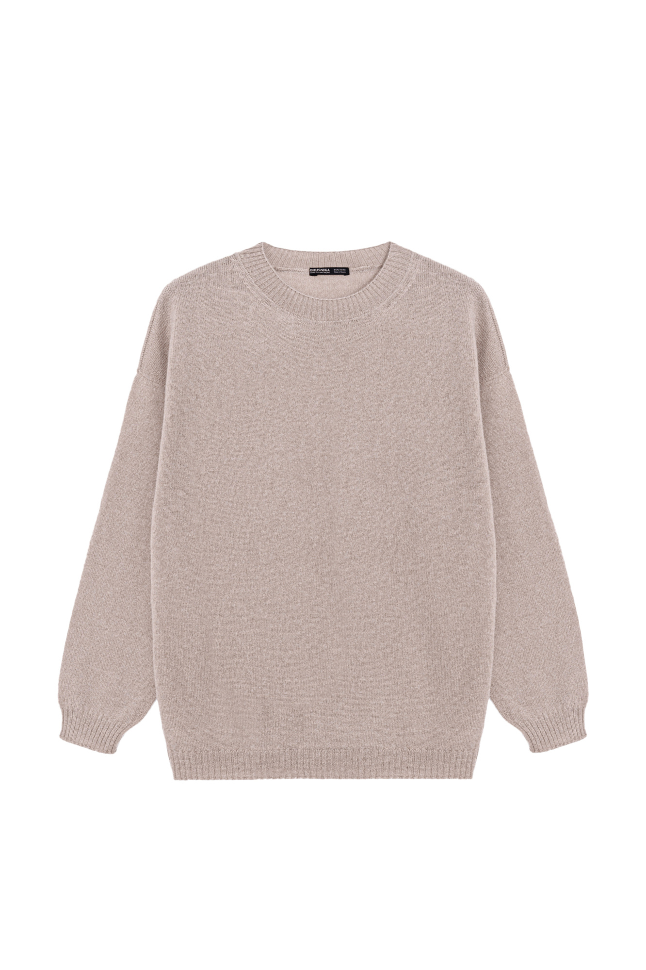 Трикотажный джемпер из 100% кашемира. Модель свободного силуэта со спущенной линией плеча и круглым вырезом горловины. Края изделия выполнены в рубчик.