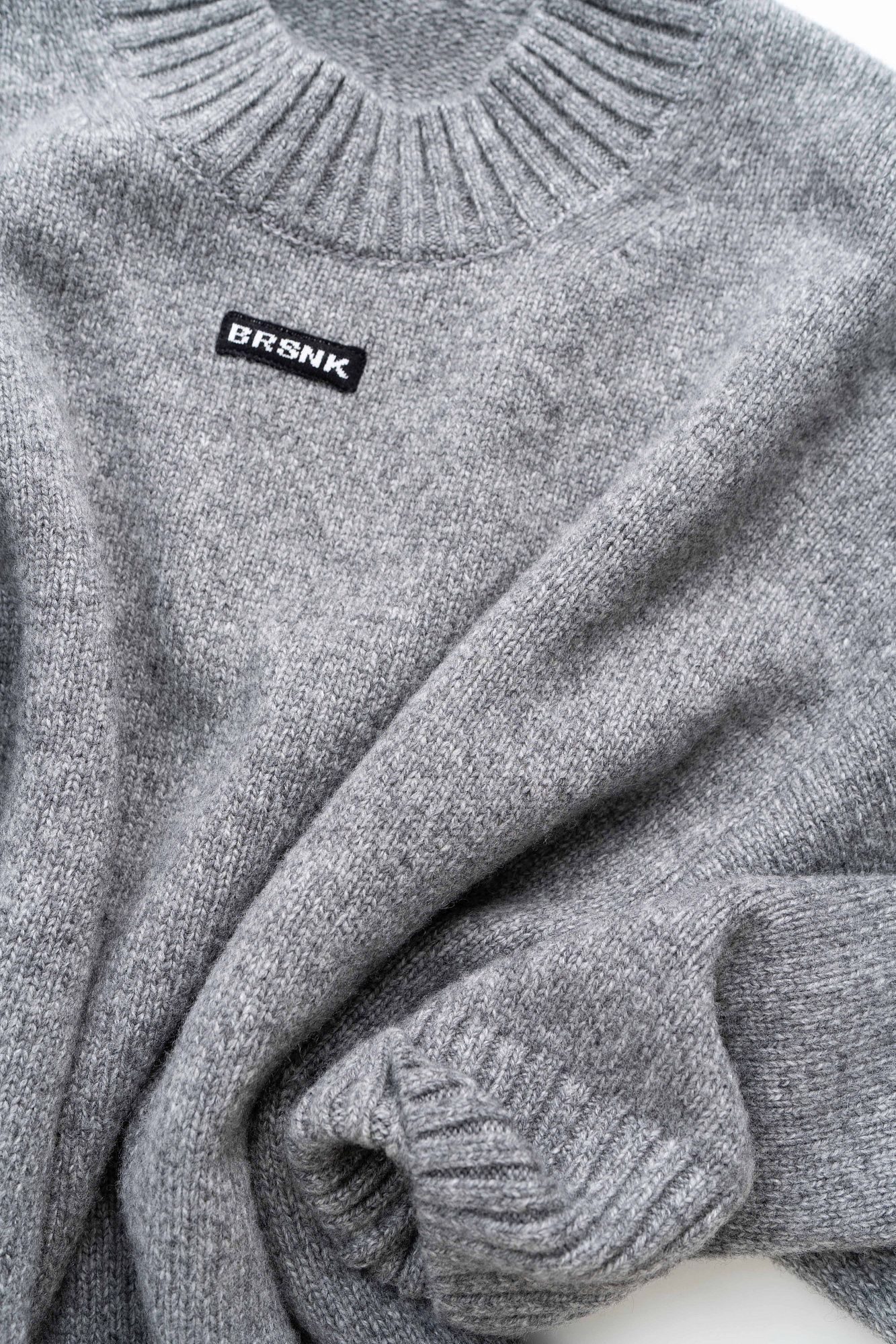 Объемный джемпер из шерсти с добавлением кашемира. Модель свободного силуэта, со спущенной линией плеч. Воротник выполен изнаночными петлями в широкий рубчик. Манжеты рукавов и низ изделия - на резинке. Джемпер декорирован брендированным трикотажным ярлычком.