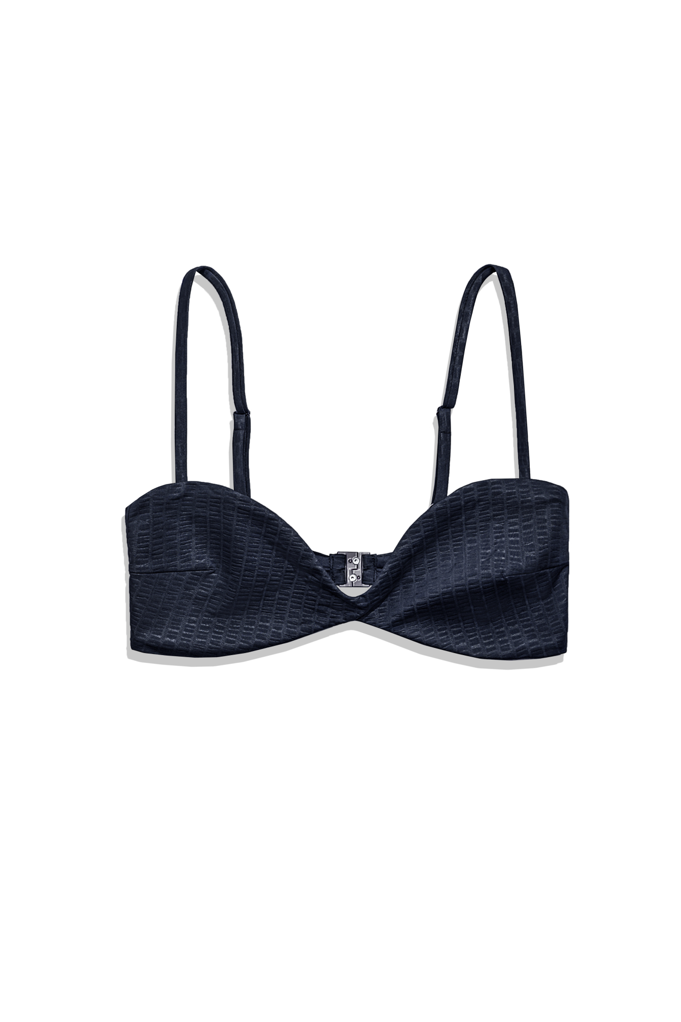 Бра из текстурной ткани. Модель на тонких регулируемых бретельках и застежкой сзади.