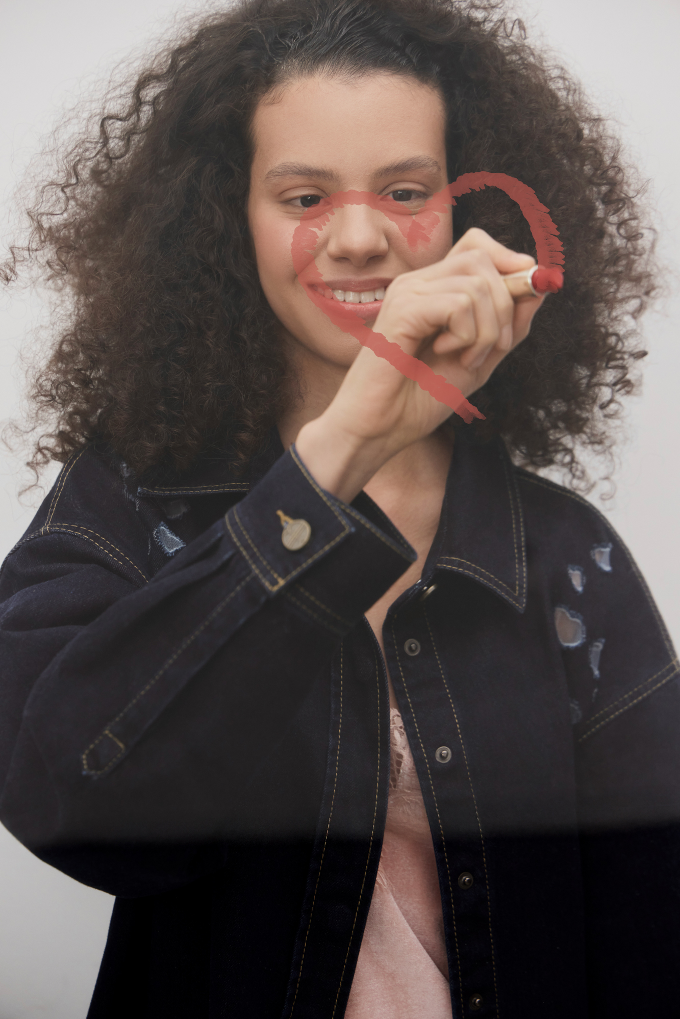 Джинсовая рубашка из 100% хлопка. Модель свободного кроя с длинными рукавами, классическим отложным воротником и застежкой на магнитные кнопки. Изделие декорировано брендированной пуговицой под воротником и на манжетах, высоким фактурным разрезом, контрастной строчкой и перфорацией в виде россыпи сердечек.
