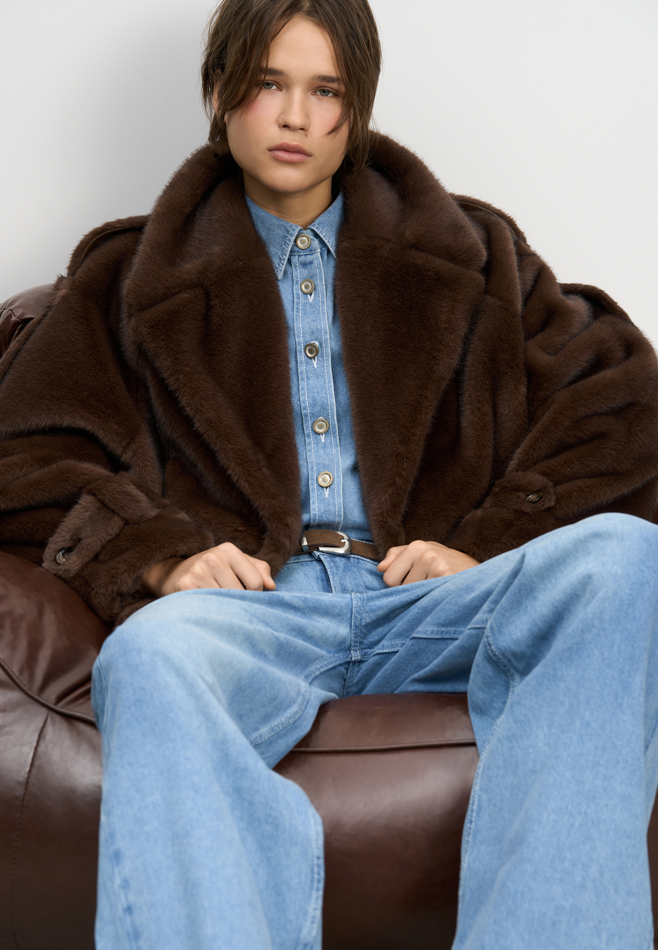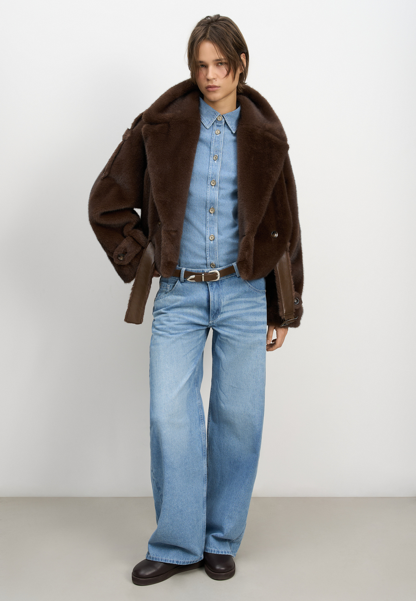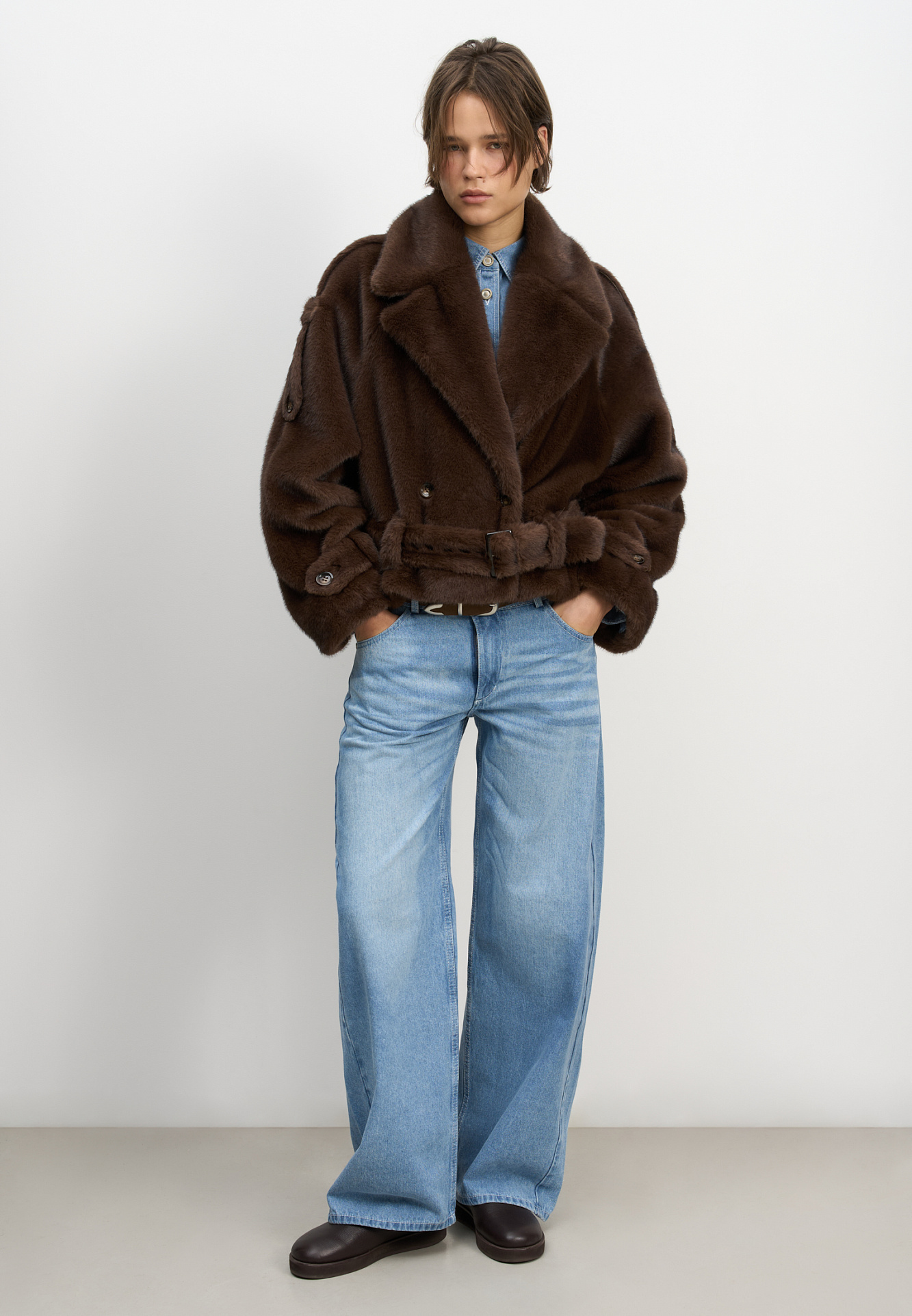Короткая шуба с поясом