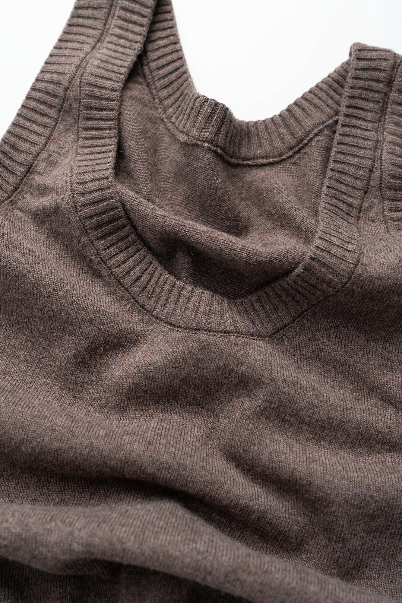 Цельновязанный топ из кашемира и шерсти. Модель свободного силуэта, с глубоким U-вырезом горловины. Края изделия выполнены в широкий рубчик.
