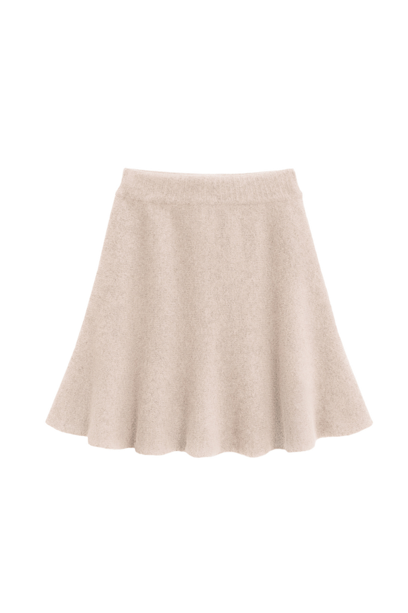 Трикотажная юбка длины мини из шерсти и пуха лисы. Модель полусолнце с эластичным поясом на резинке.