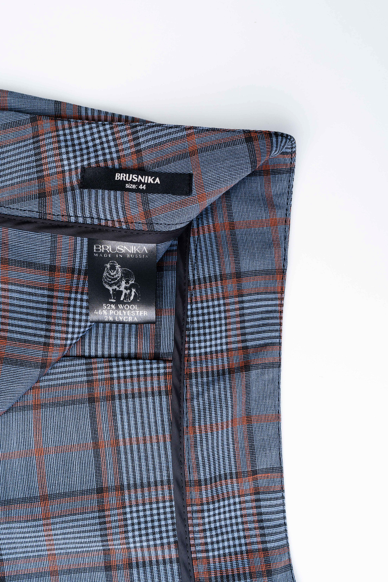 Юбка длины миди из шерсти в клетку. Модель А-силуэта с крупными косыми складками спереди. Застежка на молнию сзади. Изделие без подкладки.