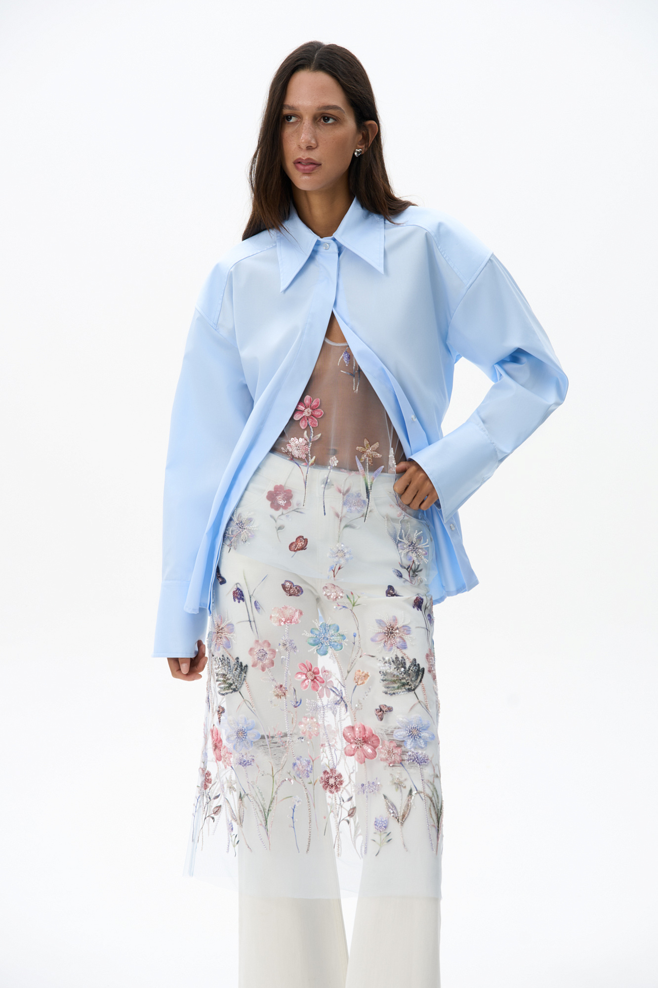 Прозрачная юбка с вышивкой