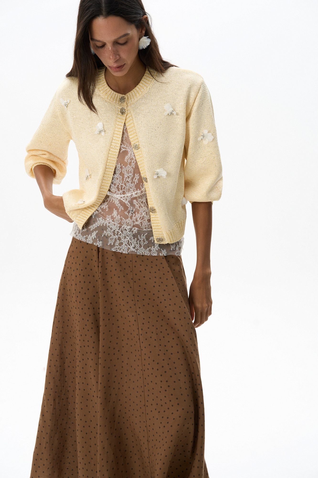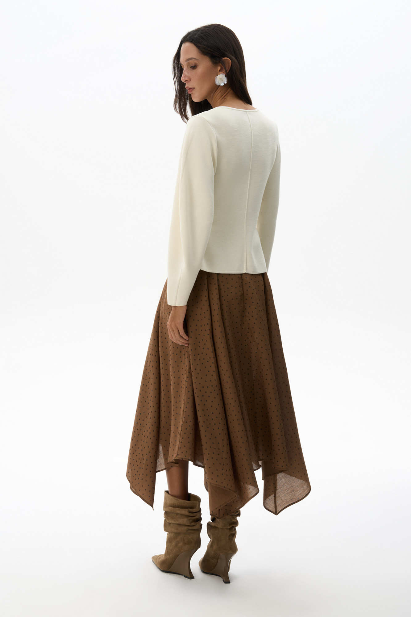 Юбка из тенсела длины миди. Модель асимметричного кроя с застежкой на потайную молнию.