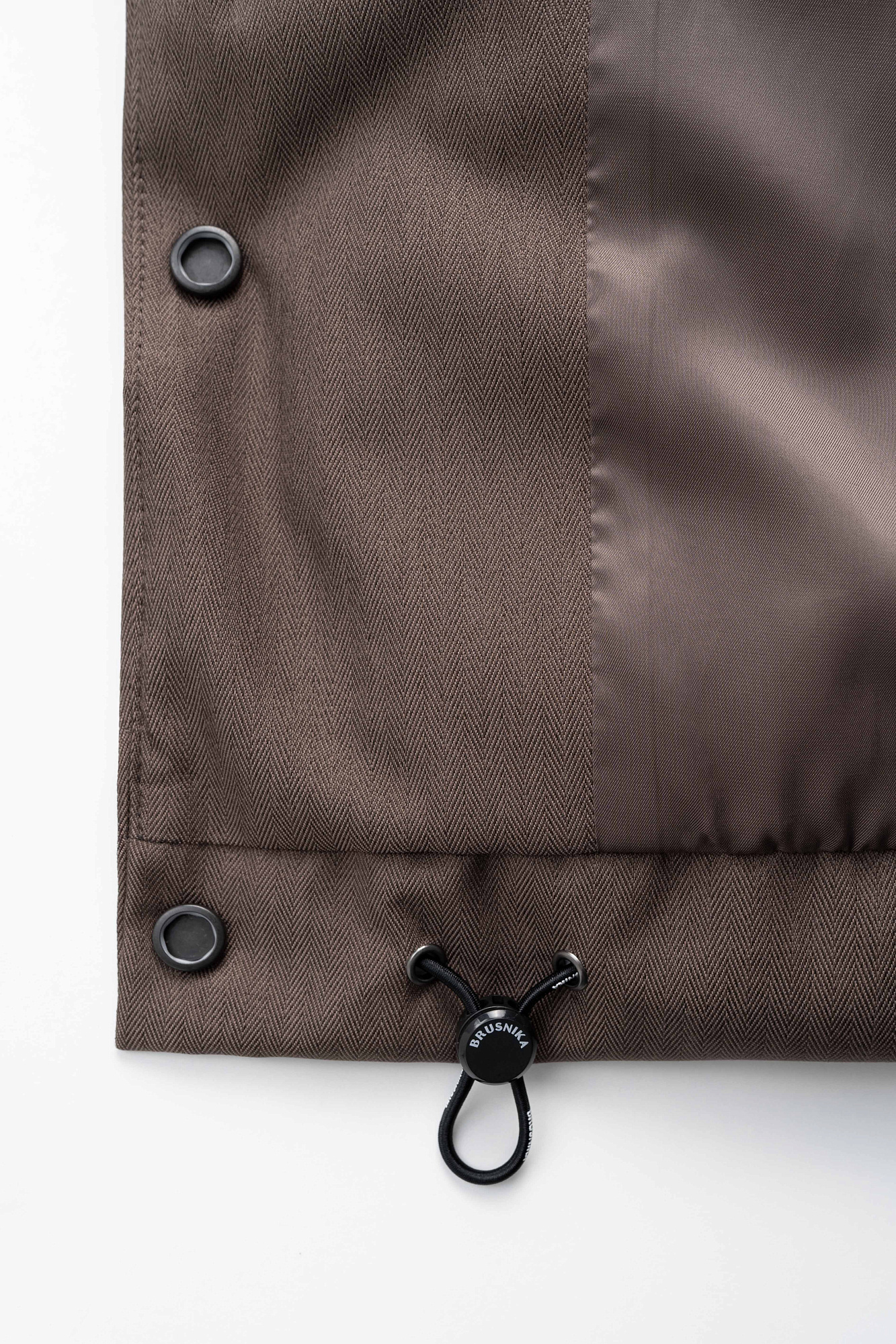 Укороченный жилет на пуху. Модель с капюшоном и воротником-стойкой. Застежка на кнопки.