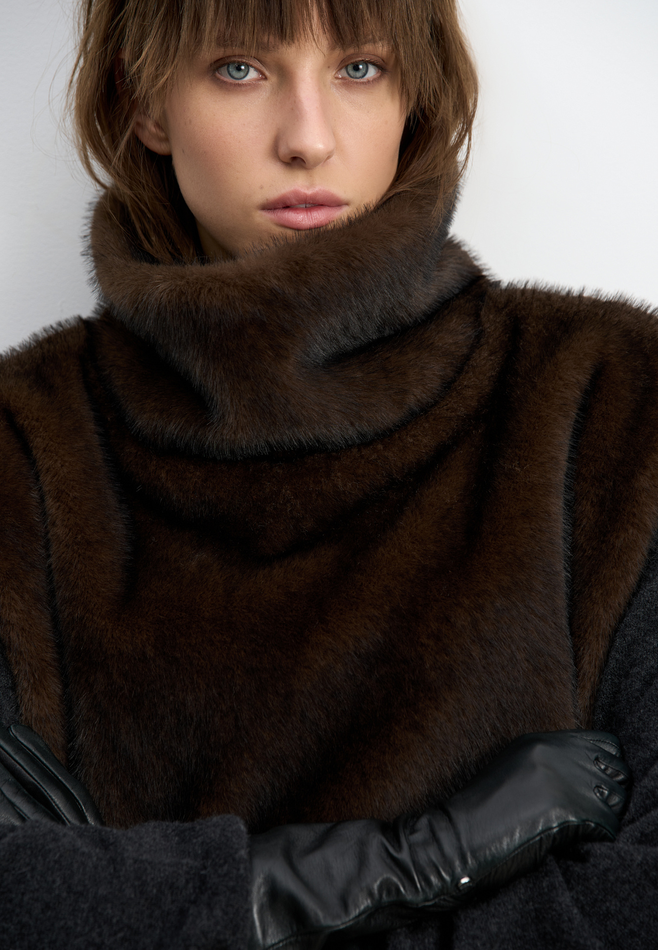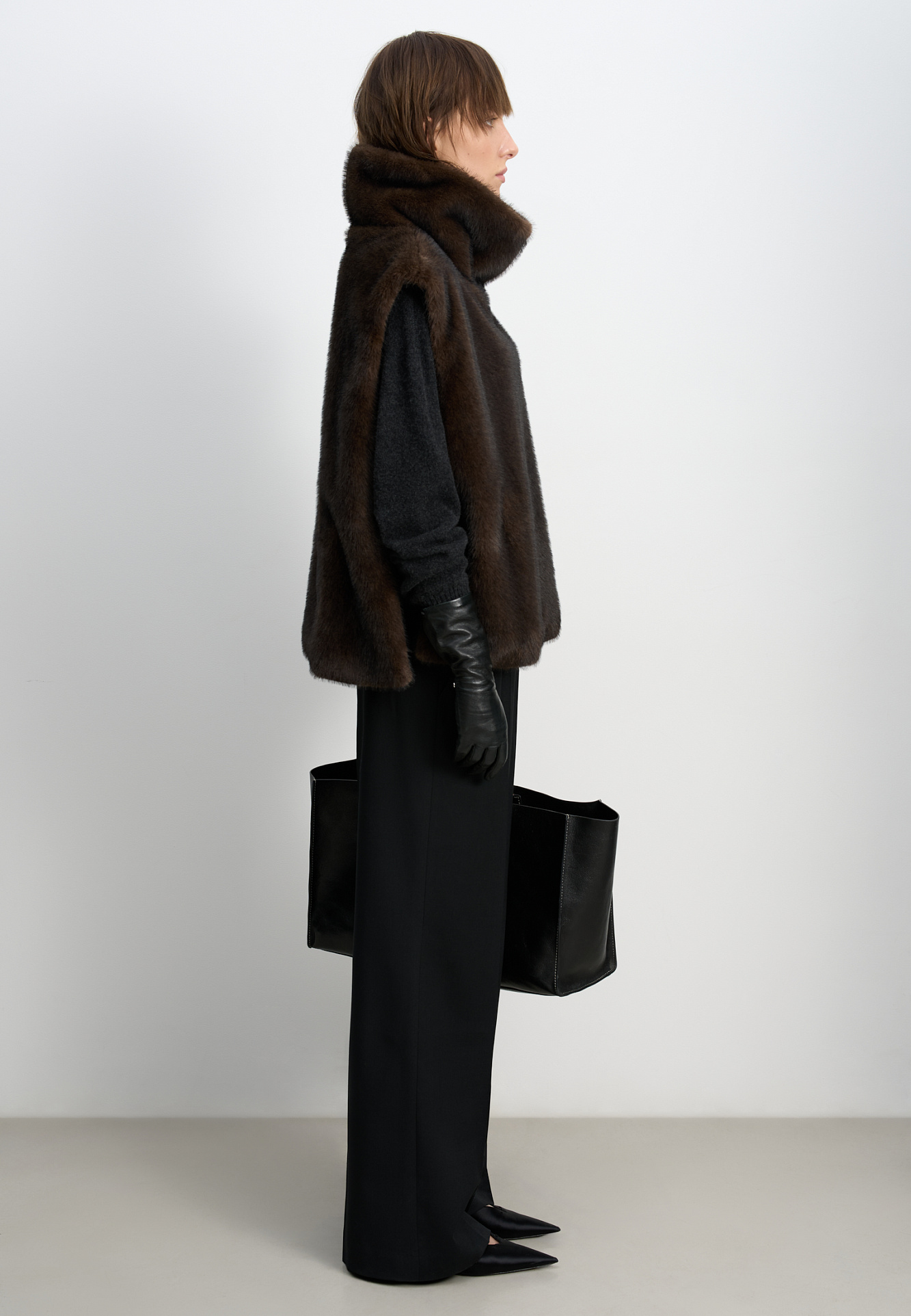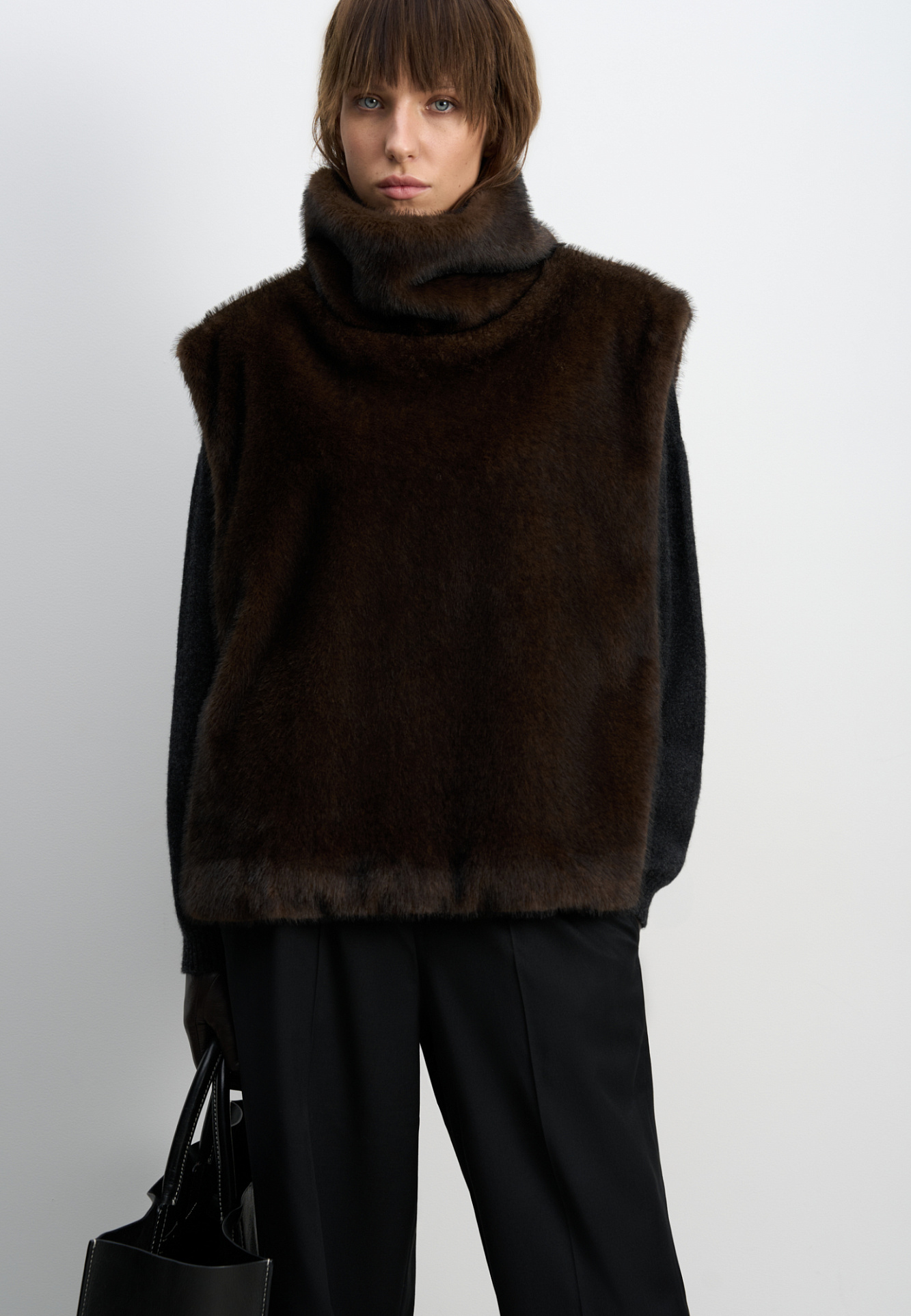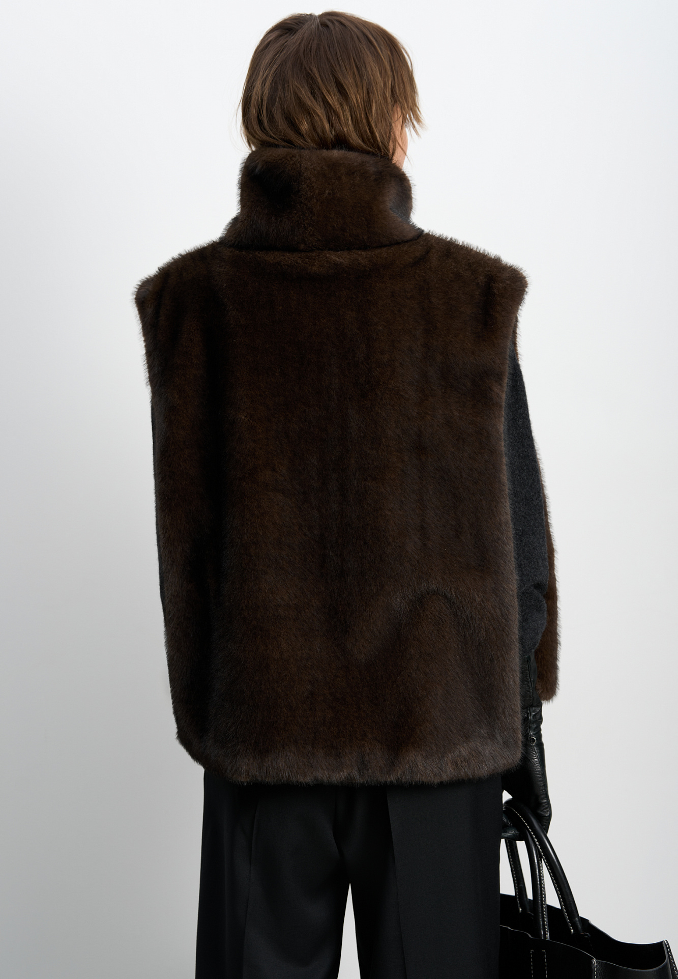 Жилет из экомеха с воротником-стойкой