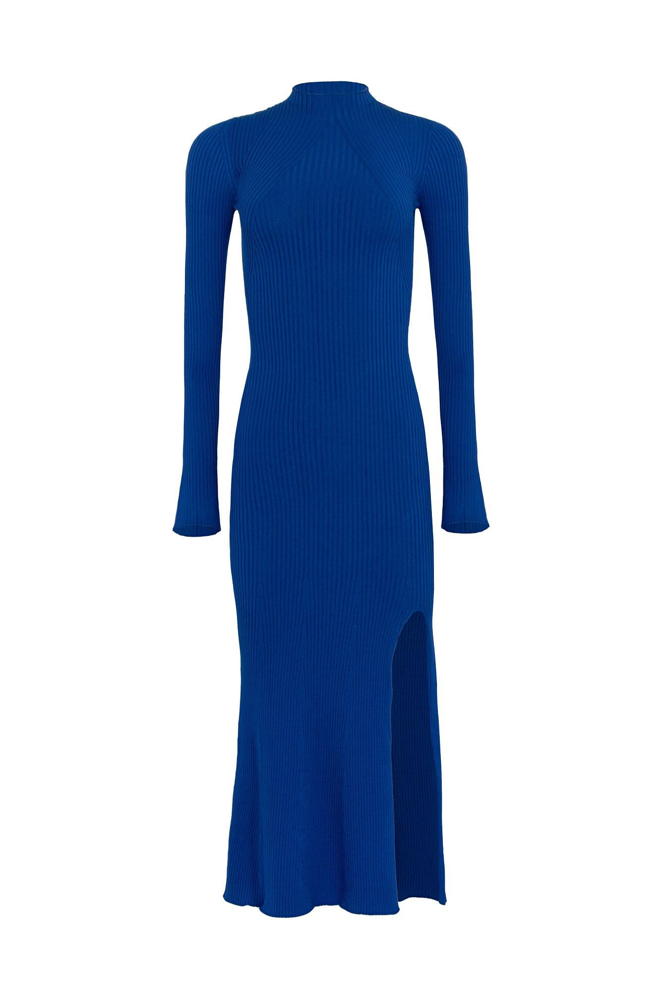 Цельновязаное платье из вискозы, длинные рукава с разрезом расширенные к запястью. Элегантный разрез на левой ноге.