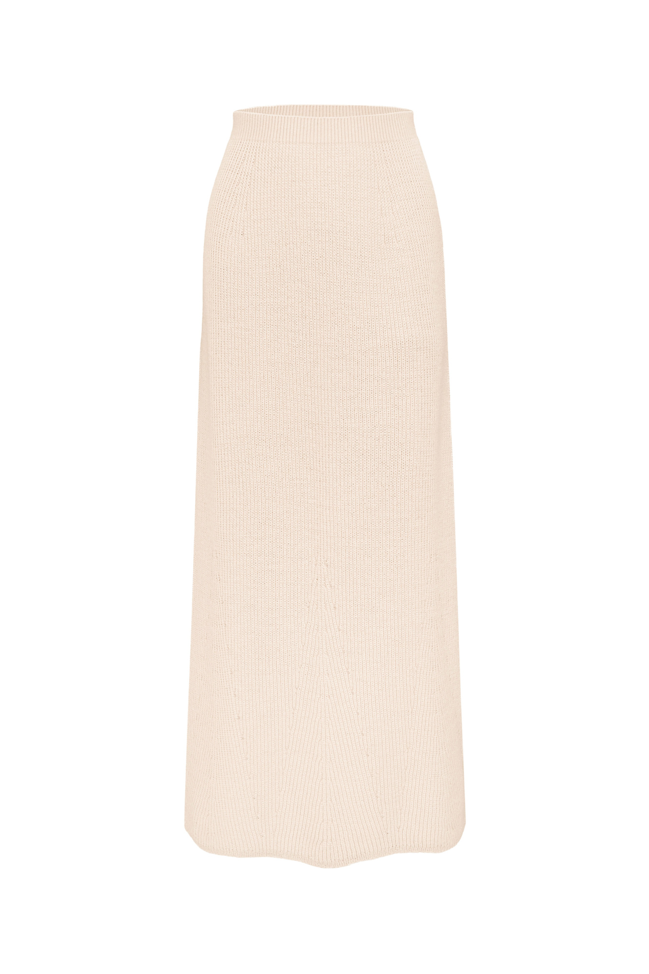 Трикотажная юбка длины макси из хлопка с добавлением вискозы. Модель свободного силуэта с эластичным поясом в рубчик. Дополнить образ можно жилетом в таком же стиле.