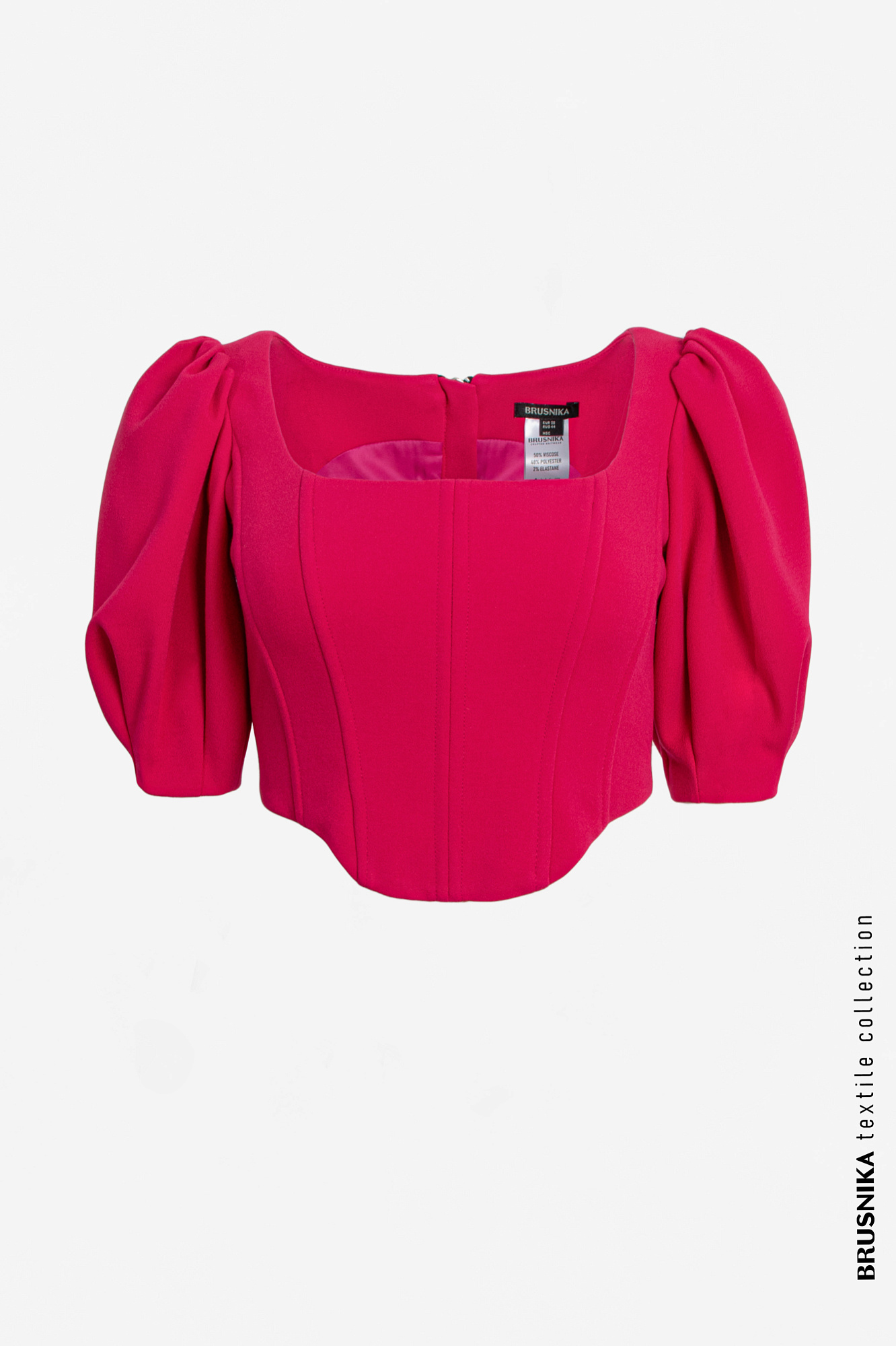 Топ корсетного типа с объёмными рукавами, с молнией на спинке