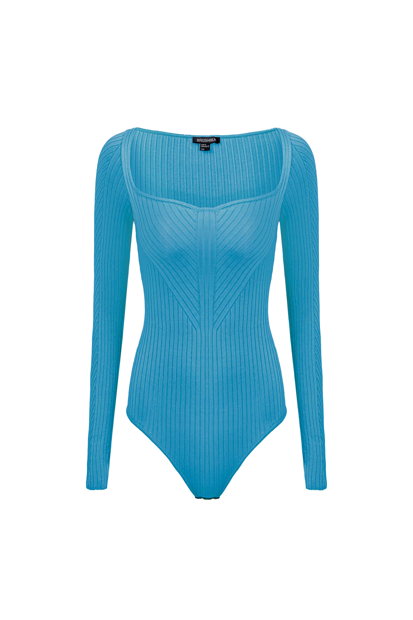 Трикотажное боди из вискозы. Модель с длинным рукавом и фигурным вырезом горловины. Изделие выполнено в широкий диагональный рубчик.
