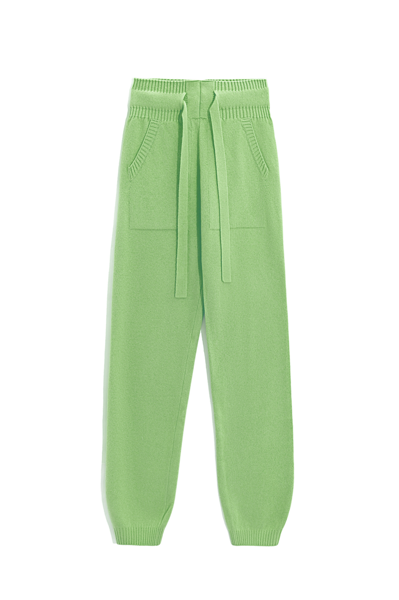 Трикотажные брюки-джоггеры из кашемира и шерсти. Модель с широким эластичным поясом на кулиске, манжетами на резинке и боковыми карманами.