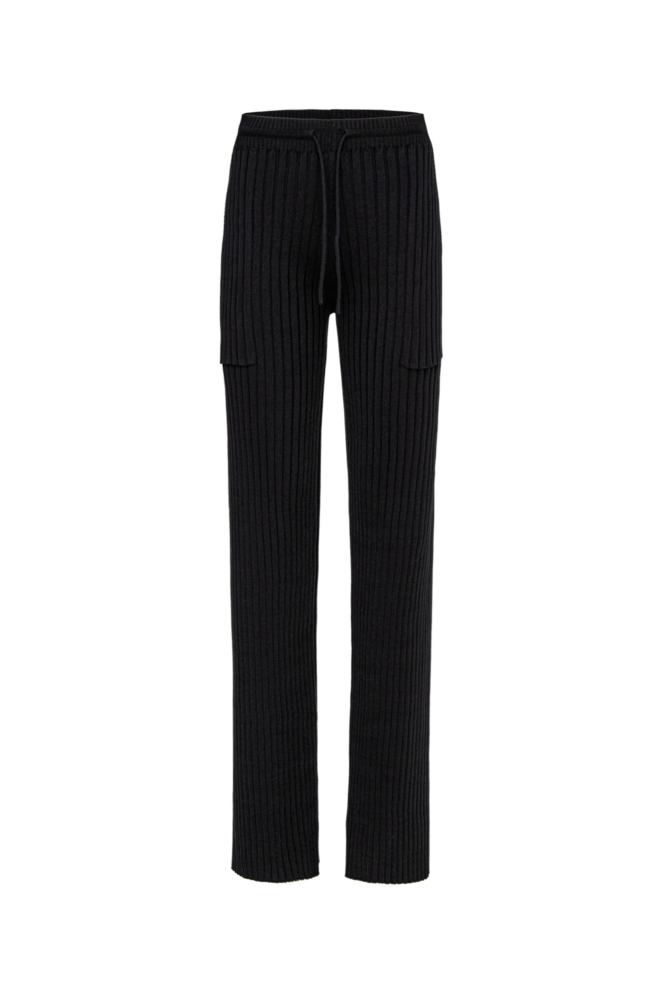 Трикотажные широкие брюки в рубчик с накладными карманами и эластичном поясом на кулиске. Дополнить образ можно джемпером в таком же стиле.