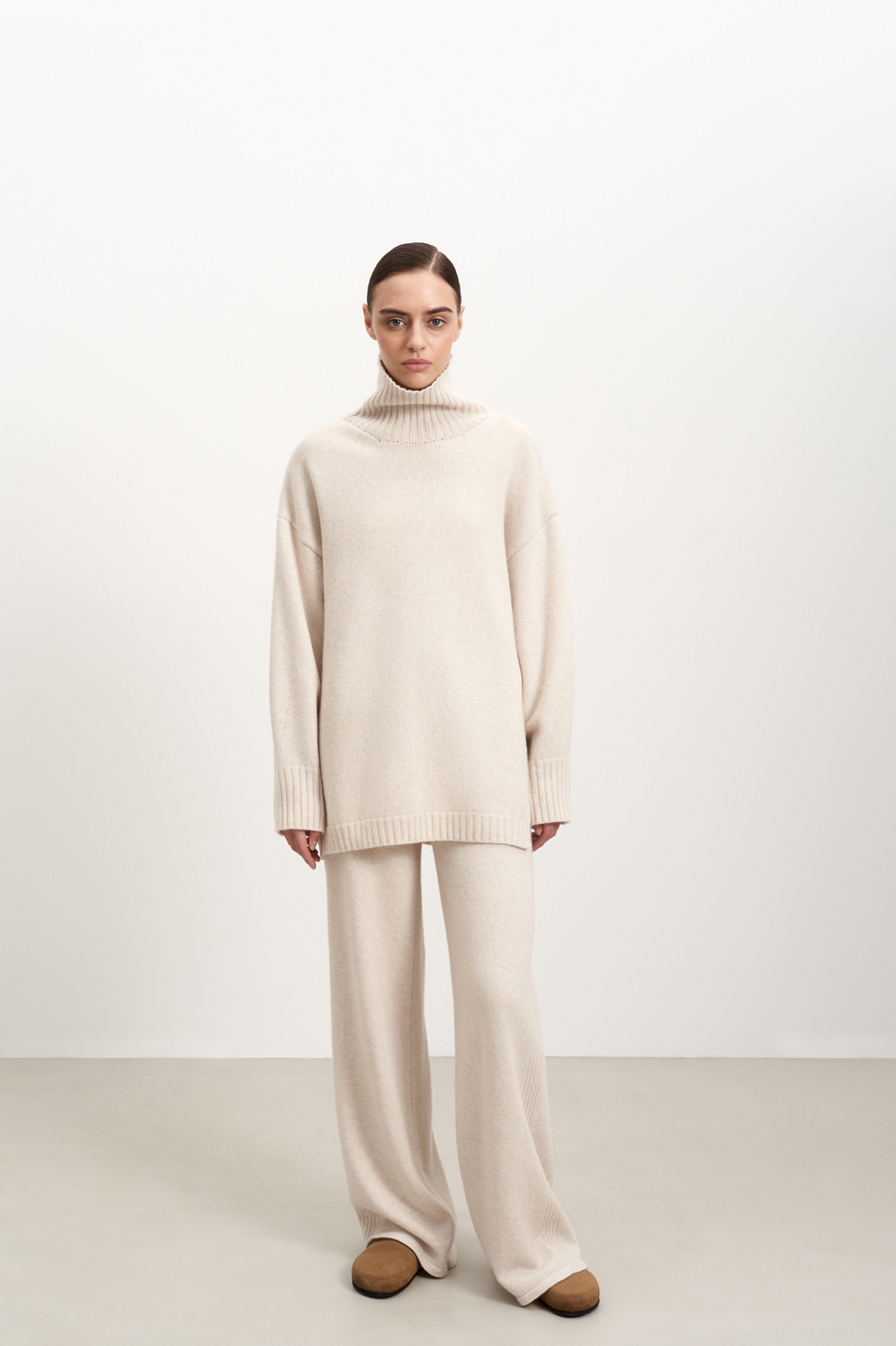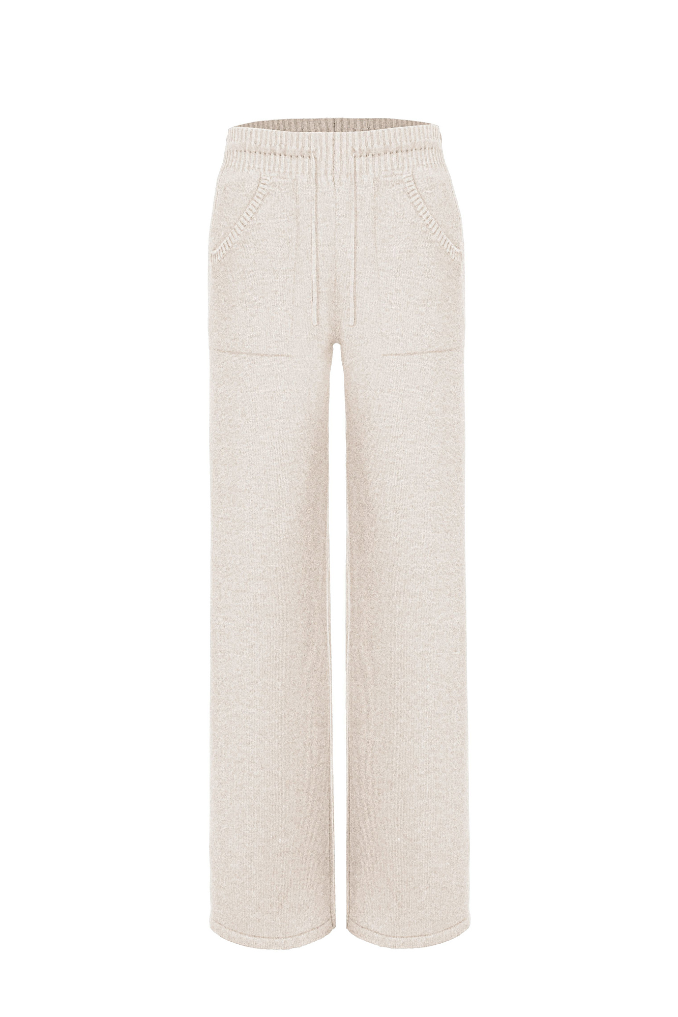 Широкие брюки из кашемира и шерсти средней посадки на кулиске, с накладными карманами.