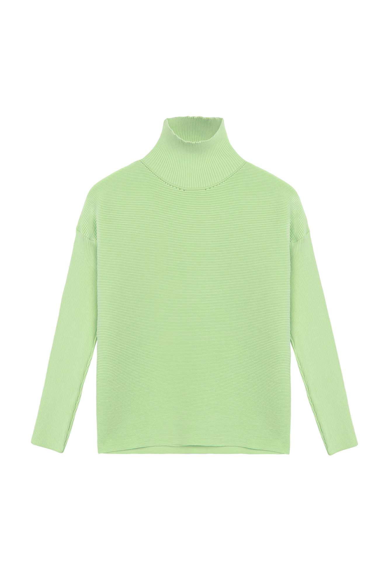 Трикотажный джемпер из вискозы в мелкий валик. Модель с длинным рукавом и воротником-стойкой.