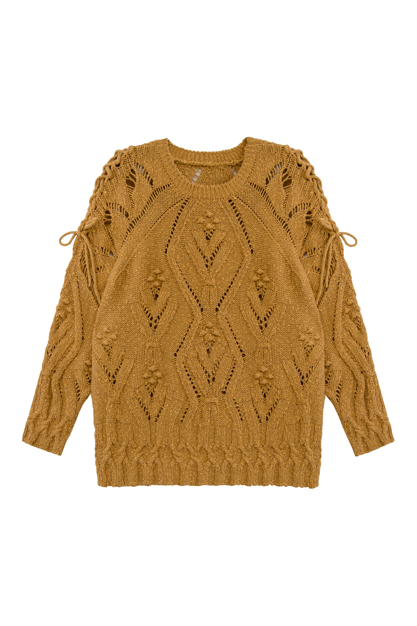 Джемпер с добавлением хлопка и льна, шнуровка на плечах.