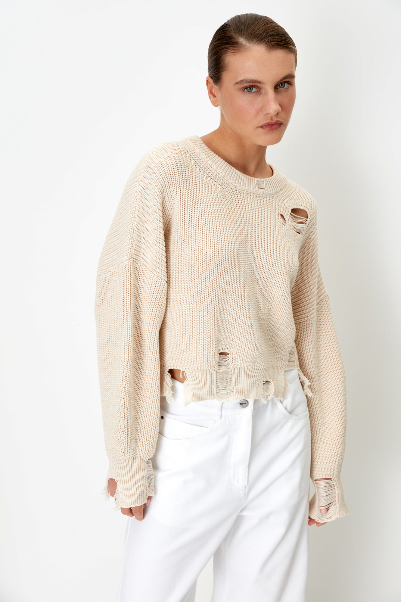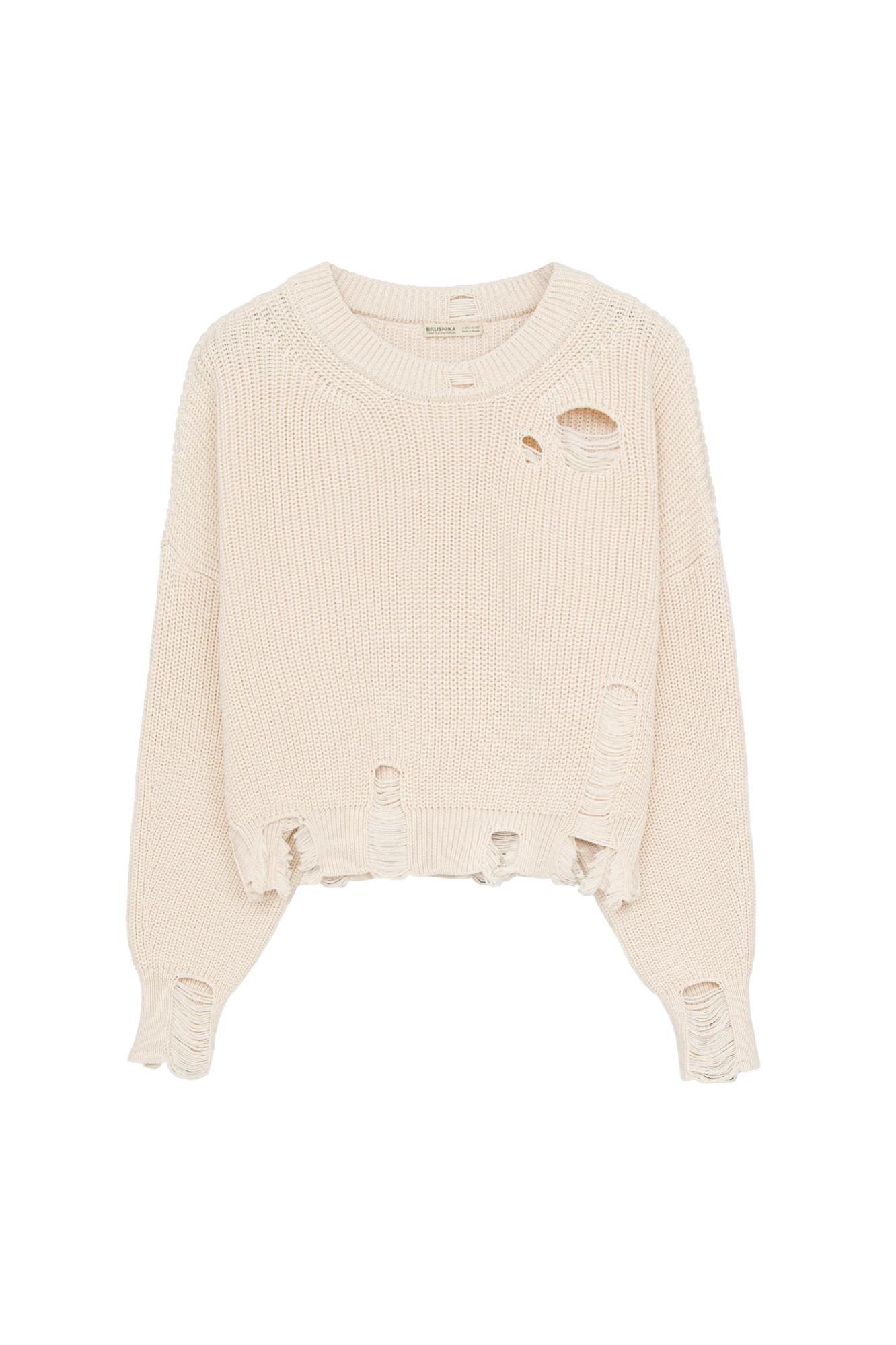 Джемпер из 100% хлопка с укороченным низом и разрезами в стиле гранж.