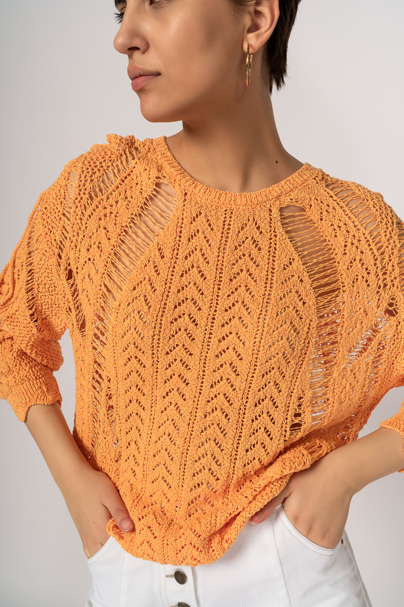 Трикотажный ажурный джемпер из тонкого хлопка.