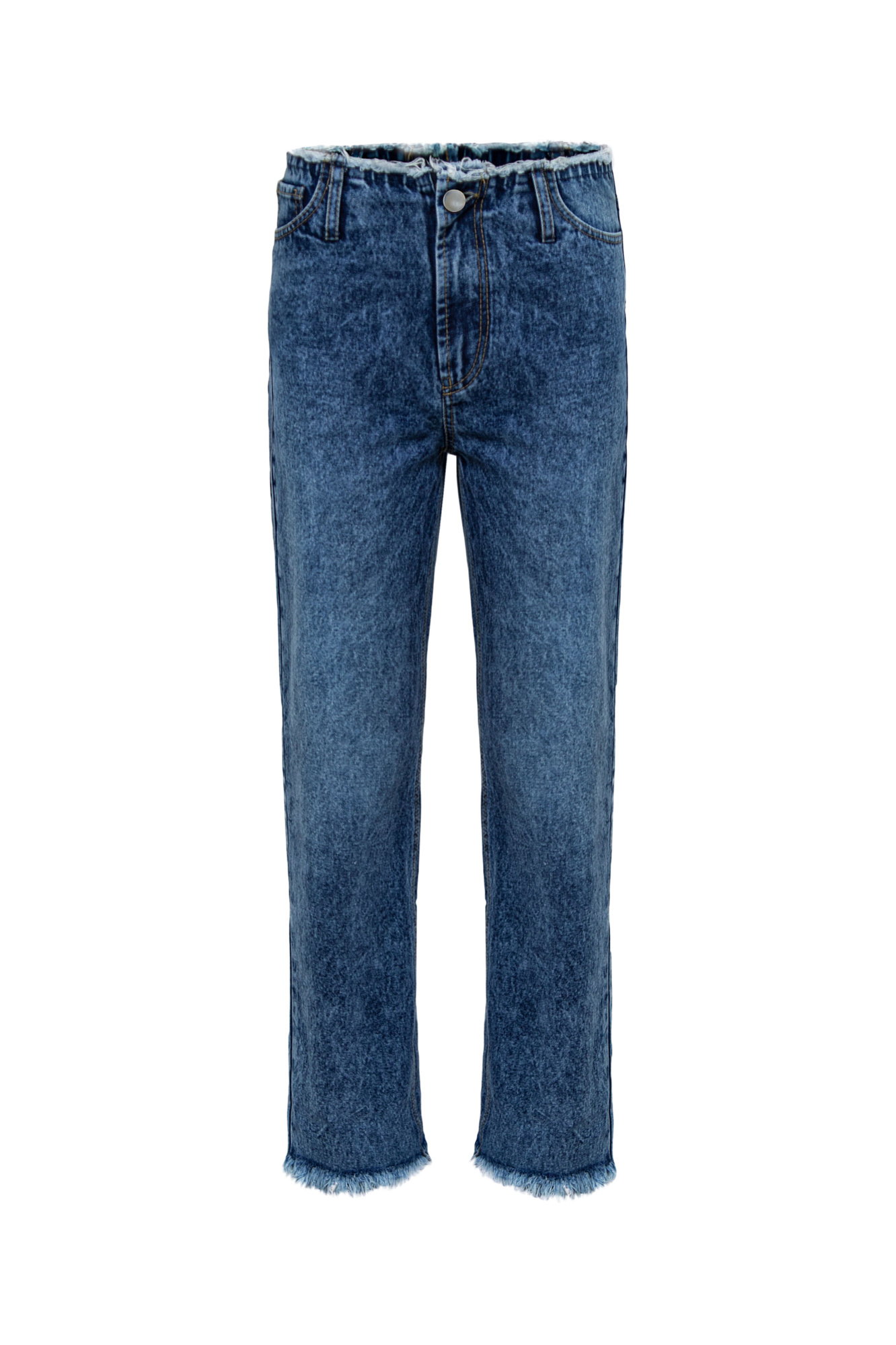 Джинсы без пояса из 100% хлопка с необработанным низом.